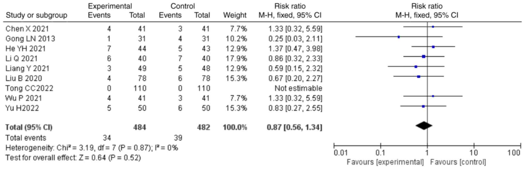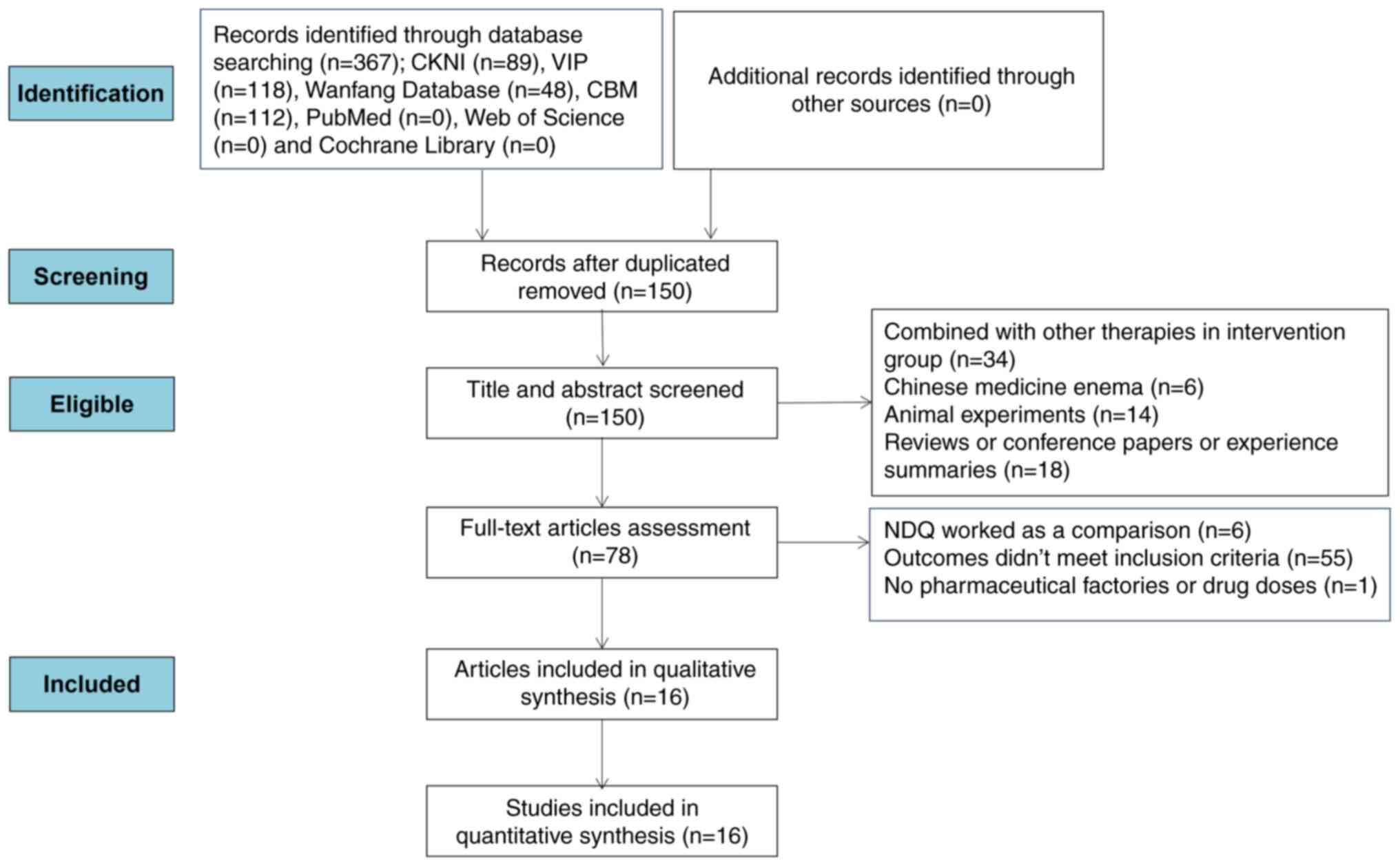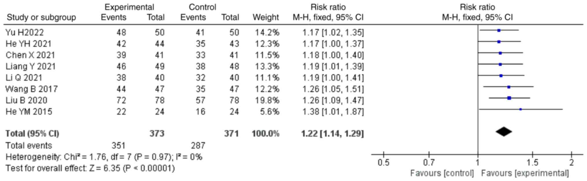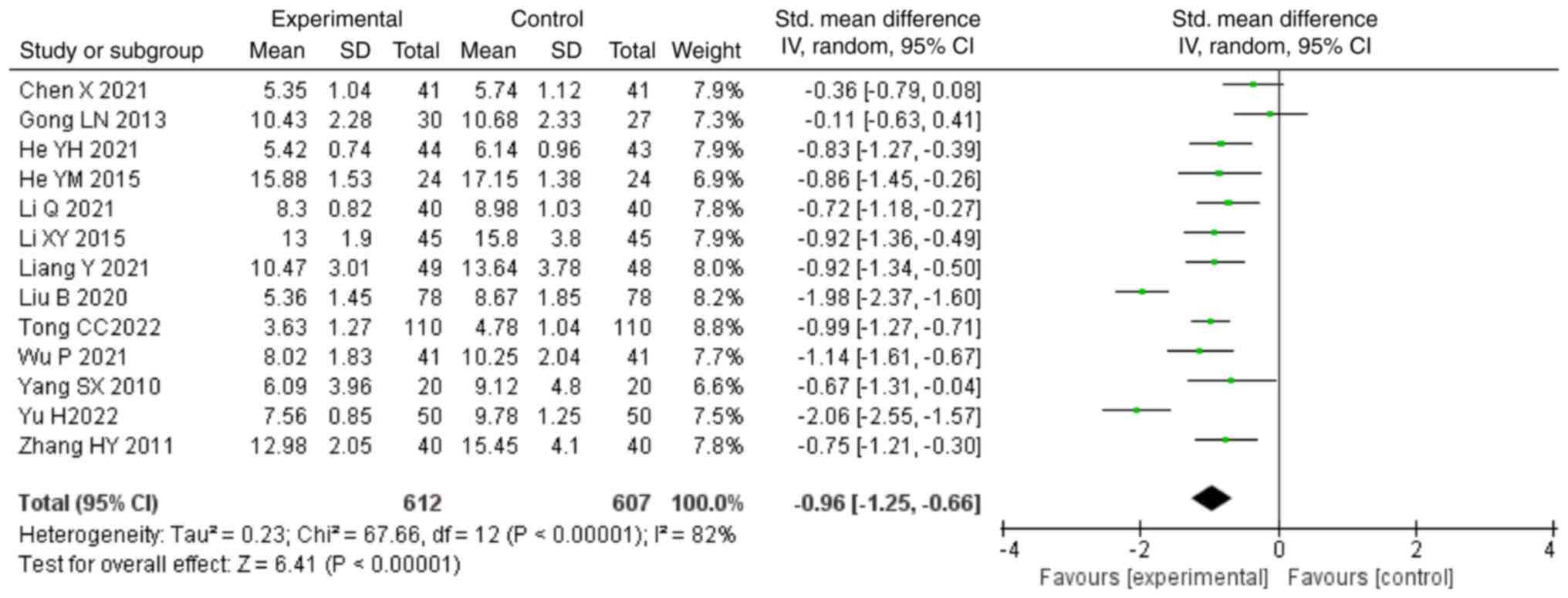 Cheng YQ, Zhang ZM and Huang JQ: Meta-analysis of niaoduqing