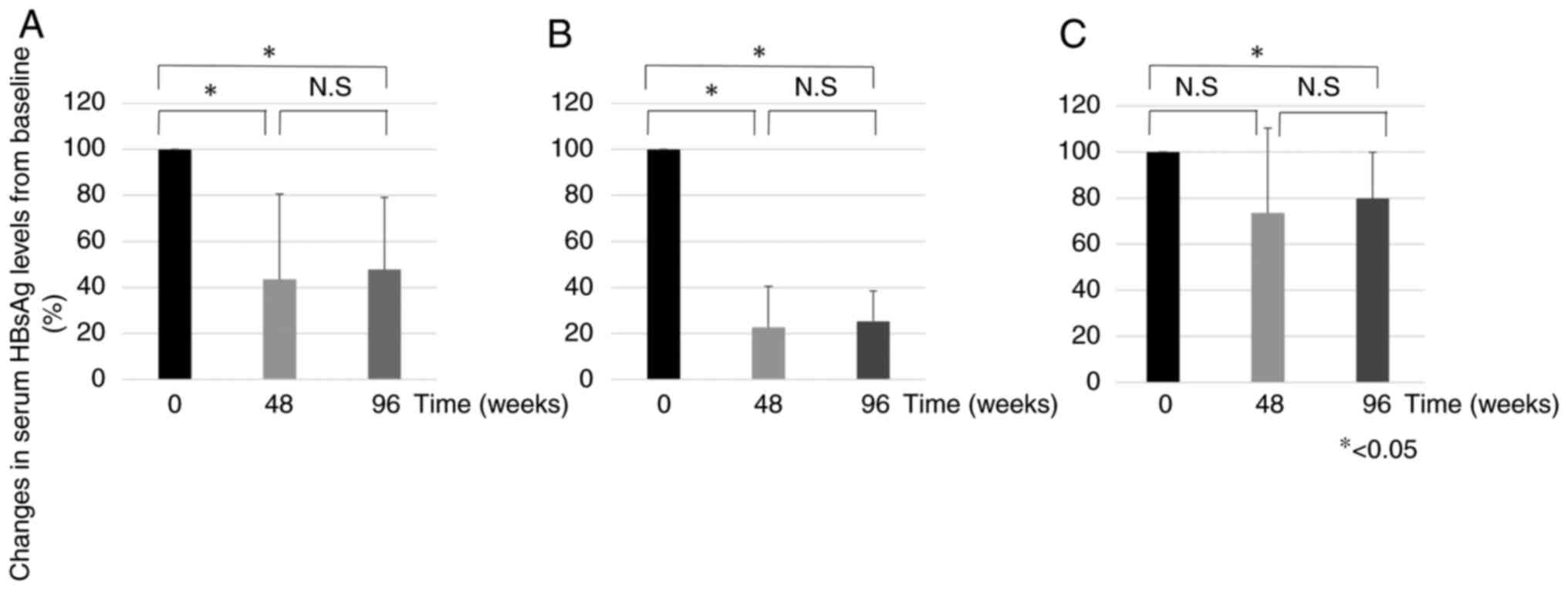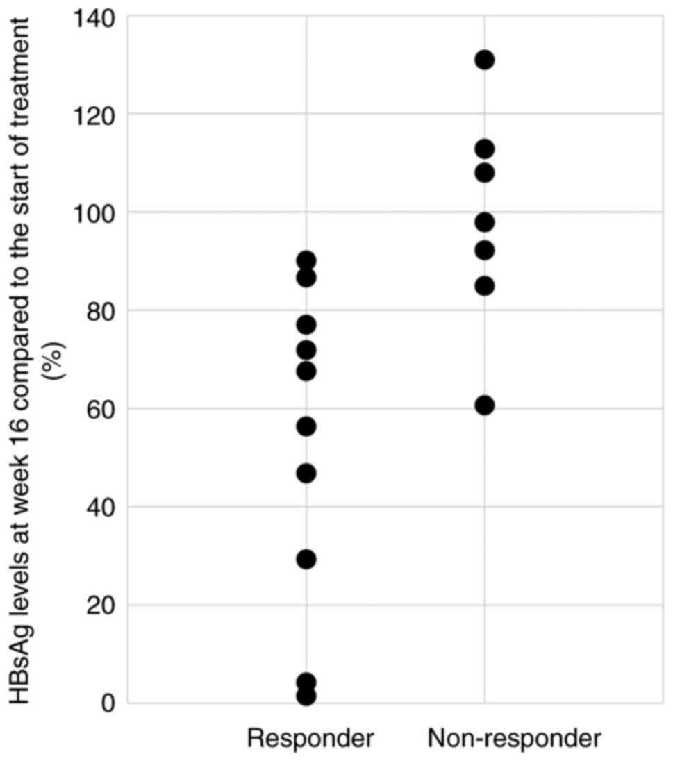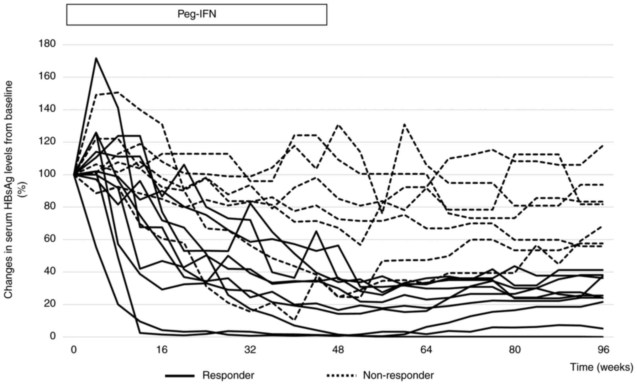 HBsAg and HBV DNA levels. Hepatology. 52:454–461. 2010.PubMed/NCBI View Article : Google Scholar