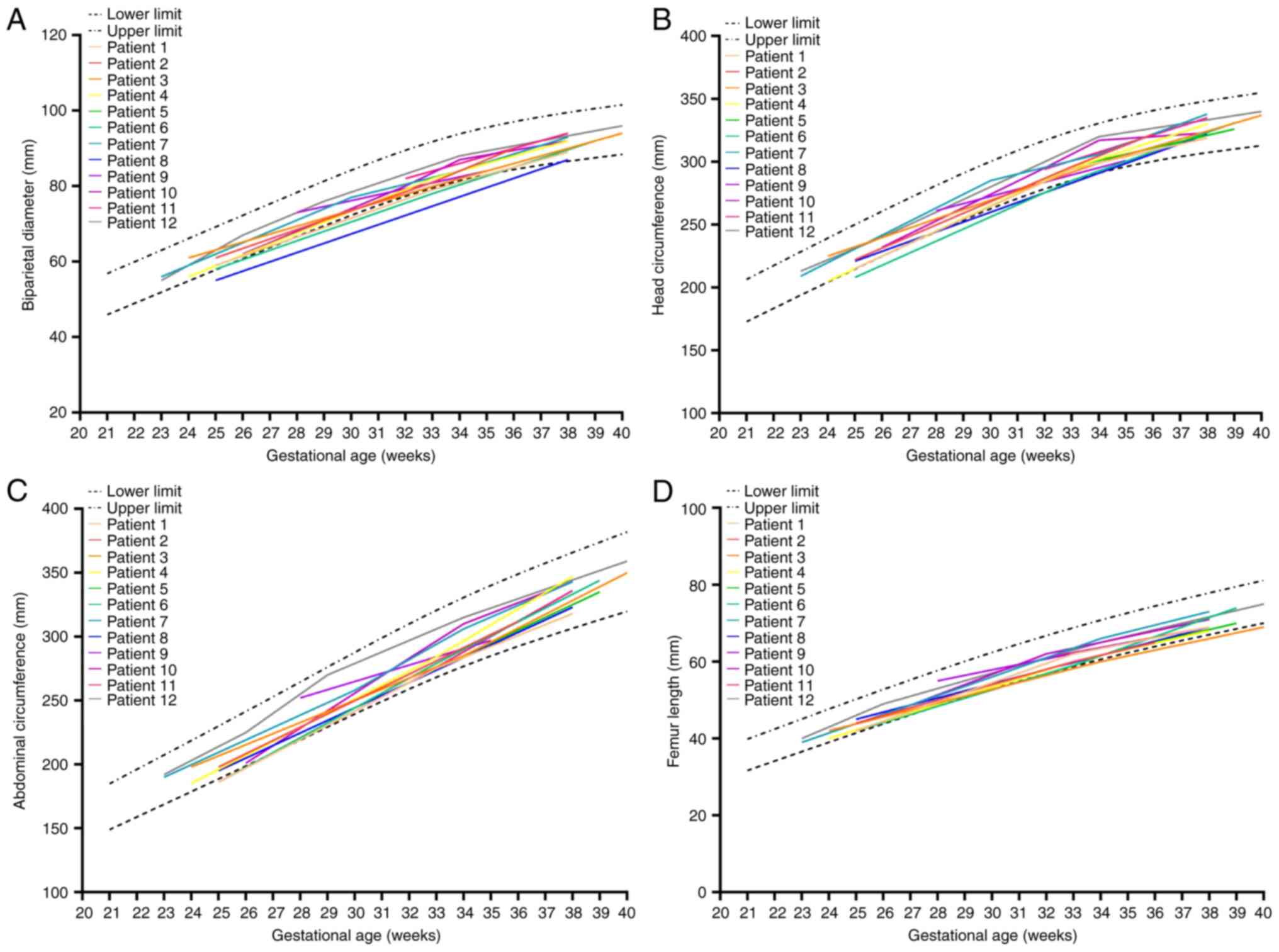 Zhang Y, Meng H, Jiang Y, Xu Z, Ouyang Y, Li S, Chen Q, Wu Q, Li R, Ru T, et al: Chinese fetal biometry: Reference equations and comparison with charts from other populations. J Matern Fetal Neonatal Med. 32:1507–1515. 2019.PubMed/NCBI View Article : Google Scholar | |