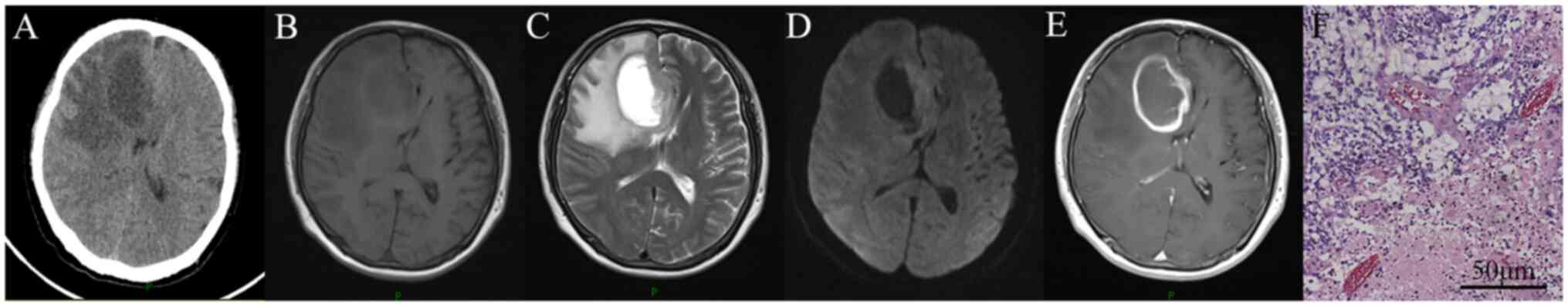 Wolff R, Zimmermann M, Marquardt G, Lanfermann H, Nafe R and Seifert V: Glioblastoma multiforme of the brain stem in a patient with acquired immunodeficiency syndrome. Acta Neurochir (Wien). 144:941–944; discussion 944-5. 2002.PubMed/NCBI View Article : Google Scholar | |