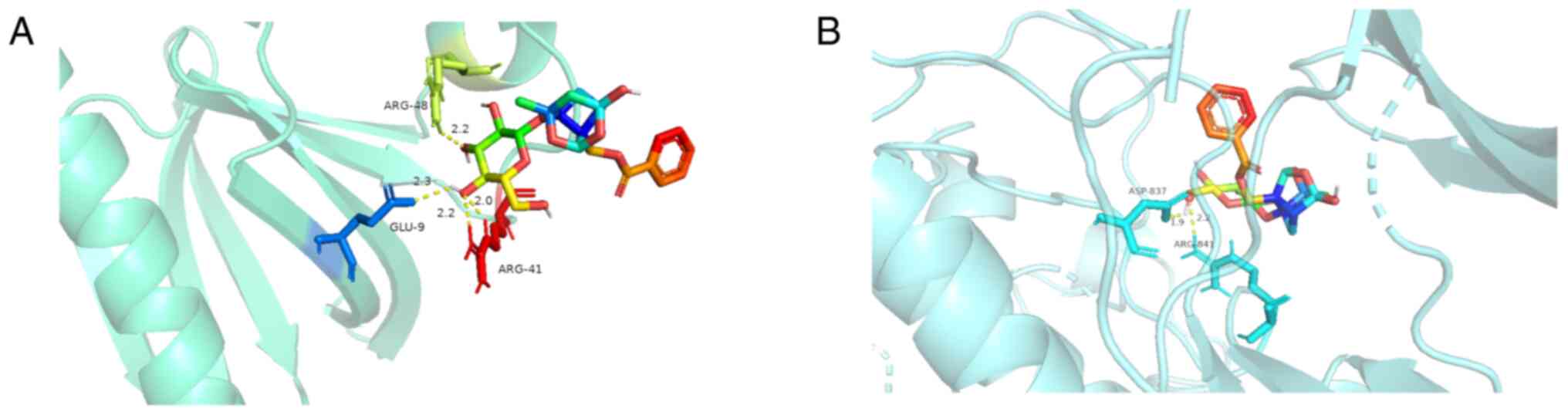 Trott O and Olson AJ: AutoDock Vina: Improving the speed and accuracy of docking with a new scoring function, efficient optimization, and multithreading. J Comput Chem. 31:455–461. 2010.PubMed/NCBI View Article : Google Scholar | |