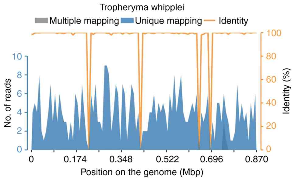 Lv Z, Chen Y, Zhou H, Chen Z, Yao Q, Ren J, Liu X, Liu S, Deng X, Pang Y, et al: Genomic characterization of two metagenome-assembled genomes of Tropheryma whipplei from China. Front Cell Infect Microbiol. 12(947486)2022.PubMed/NCBI View Article : Google Scholar | |