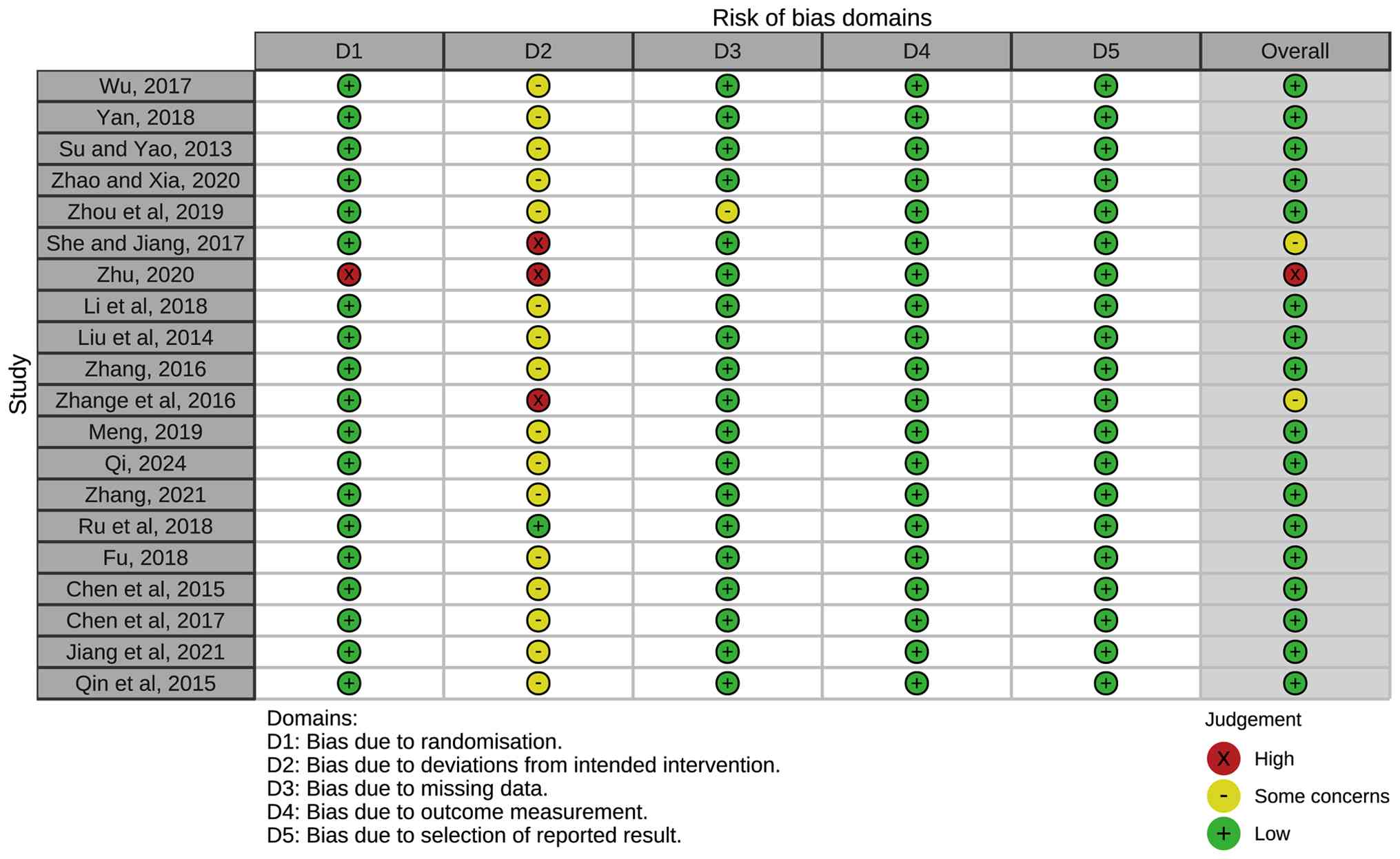 Sterne JAC, Savović J, Page MJ, Elbers RG, Blencowe NS, Boutron I, Cates CJ, Cheng HY, Corbett MS, Eldridge SM, et al: RoB 2: A revised tool for assessing risk of bias in randomised trials. BMJ. 366(l4898)2019.PubMed/NCBI View Article : Google Scholar | |