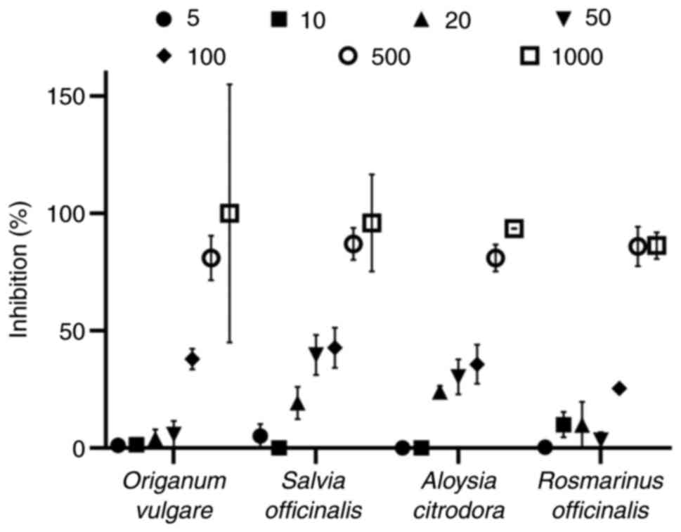 plant species in vitro. J Ethnopharmacol. 72:47–51. 2000.PubMed/NCBI View Article : Google Scholar