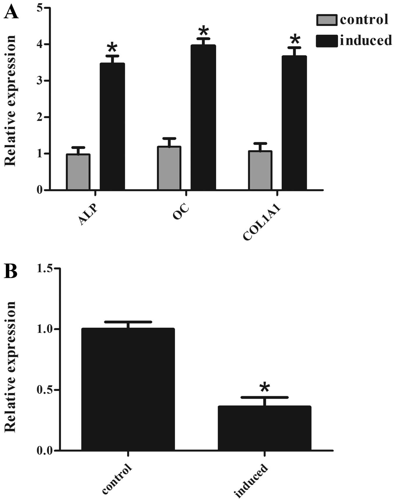 Gao J, Yang T, Han J, Yan K, Qiu X, Zhou Y, Fan Q and Ma B: MicroRNA expression during osteogenic differentiation of human multipotent mesenchymal stromal cells from bone marrow. J Cell Biochem. 112:1844–1856. 2011. View Article : Google Scholar : PubMed/NCBI