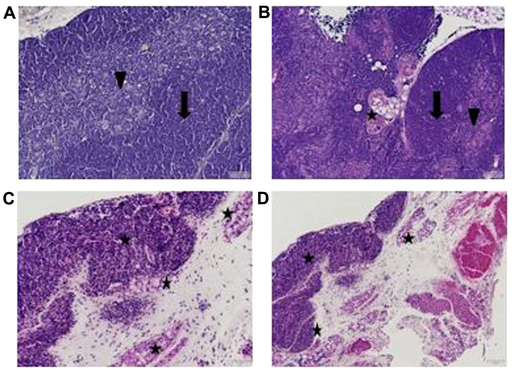 Adkins B, Charyulu V, Sun QL, Lobo D and Lopez DM: Early block in maturation is associated with thymic involution in mammary tumor-bearing mice. J Immunol. 164:5635–5640. 2000. View Article : Google Scholar : PubMed/NCBI | |