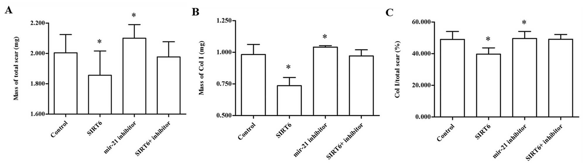 In conclusion, we examined the role and mechanisms of SIRT6 in suppressing postoperative epidural scar formation. We showed that SIRT6 promoted the expression of miR-21 and then suppressed TGF-β2 expression in a targeted manner.
