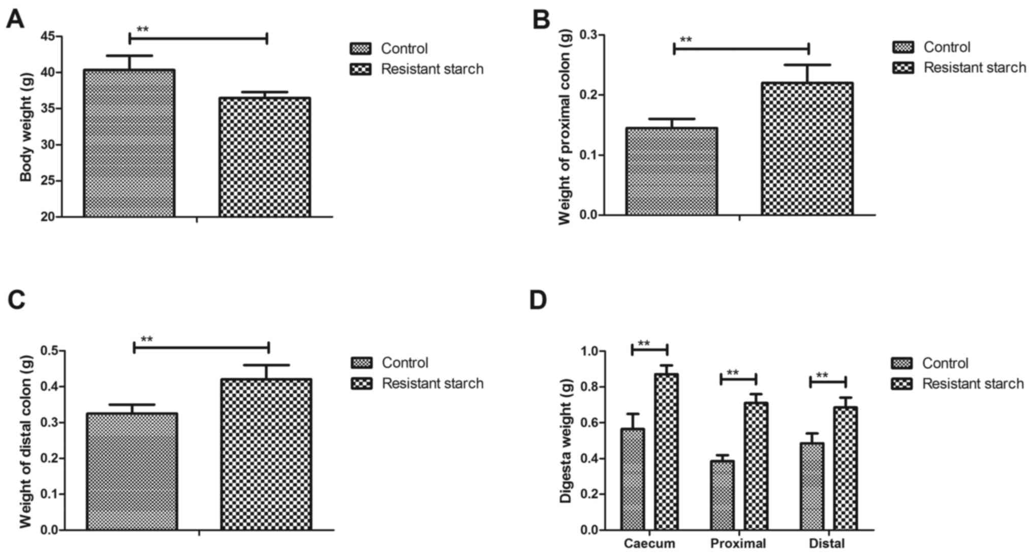 Shen D, Bai H, Li Z, Yu Y, Zhang H and Chen L: Positive effects of resistant starch supplementation on bowel function in healthy adults: A systematic review and meta-analysis of randomized controlled trials. Int J Food Sci Nutr. 68:149–157. 2017. View Article : Google Scholar | |