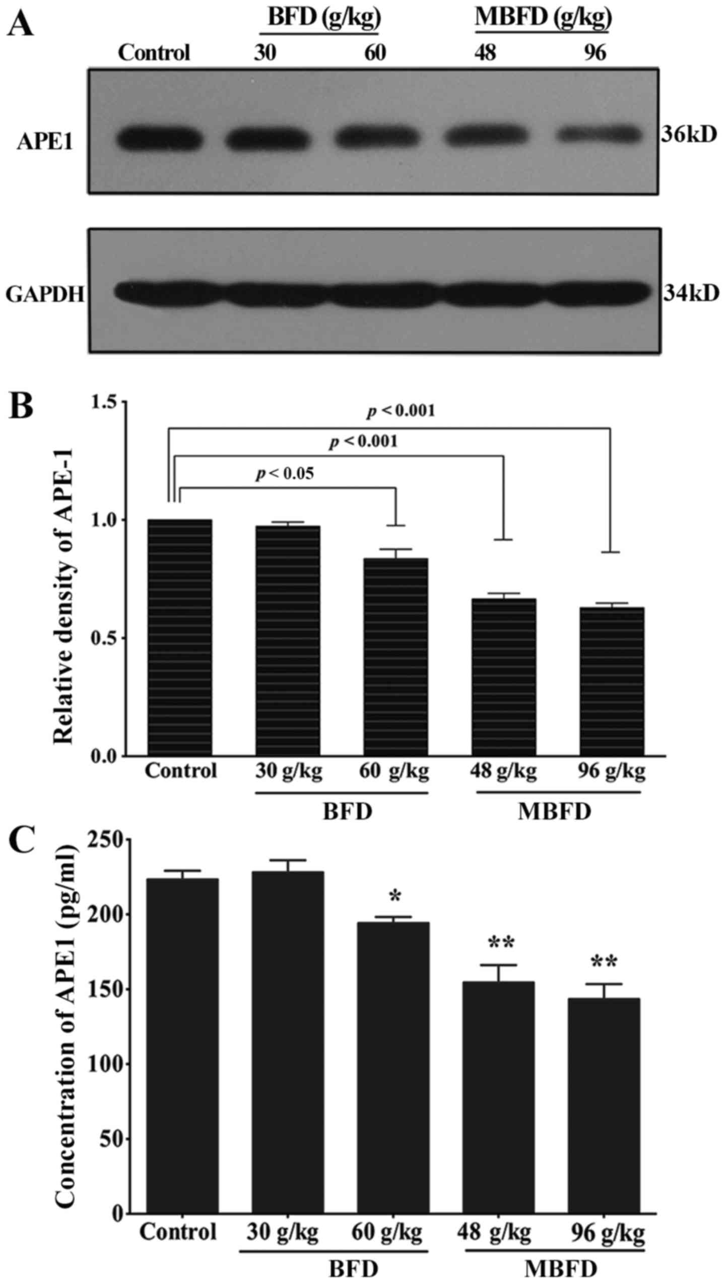 Jiang, S., Han, S., Pang, L., Jiao, Y., He, X., & Li, P. (2018). Bu-Fei decoction and modified Bu-Fei decoction inhibit the growth of non-small cell lung cancer, possibly via inhibition of apurinic/apyrimidinic endonuclease 1. International Journal of Molecular Medicine, 41, 2128-2138. https://doi.org/10.3892/ijmm.2018.3444