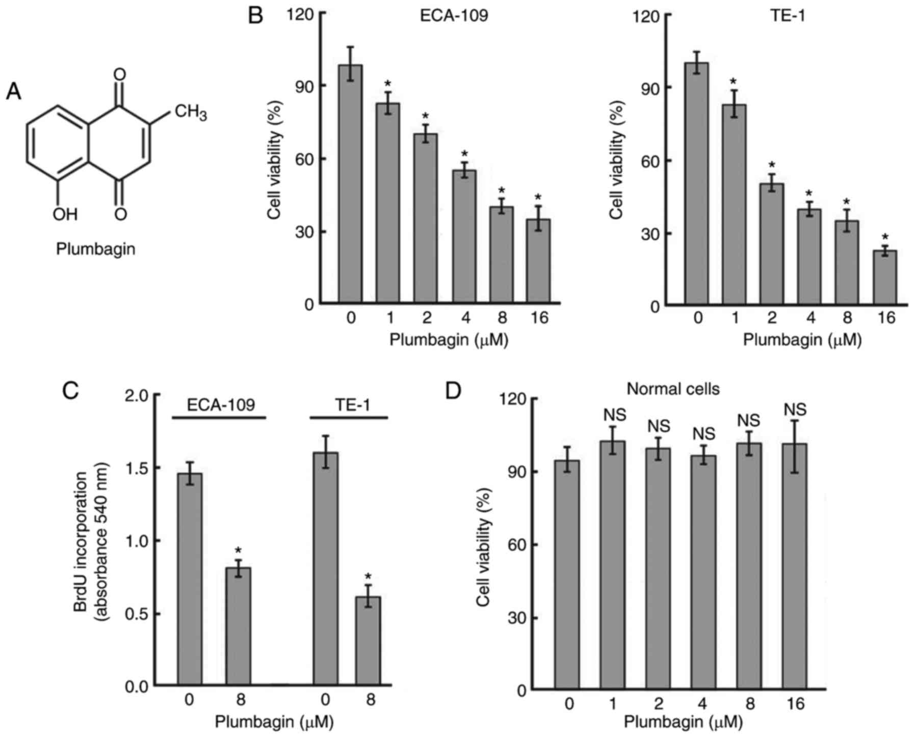 Mustafa A, Meske L, Sheikhani MO and Verma AK: Plumbagin inhibits