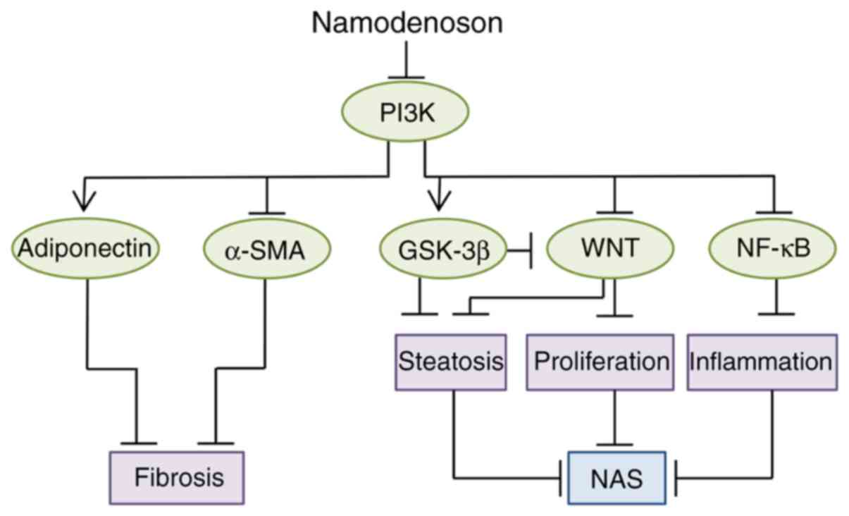 Takahashi Y, Sugimoto K, Inui H and Fukusato T: Current pharmacological therapies for nonalcoholic fatty liver disease/nonalcoholic steatohepatitis. World J Gastroenterol. 21:3777–3785. 2015. View Article : Google Scholar : PubMed/NCBI | |