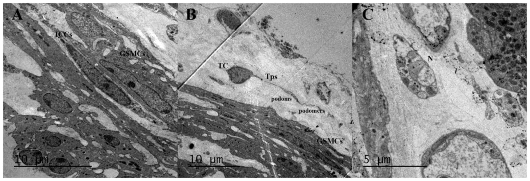 Vannucchi MG and Traini C: Interstitial cells of Cajal and telocytes in the gut: Twins, related or simply neighbor cells? Biomol Concepts. 7:93–102. 2016. View Article : Google Scholar : PubMed/NCBI | |