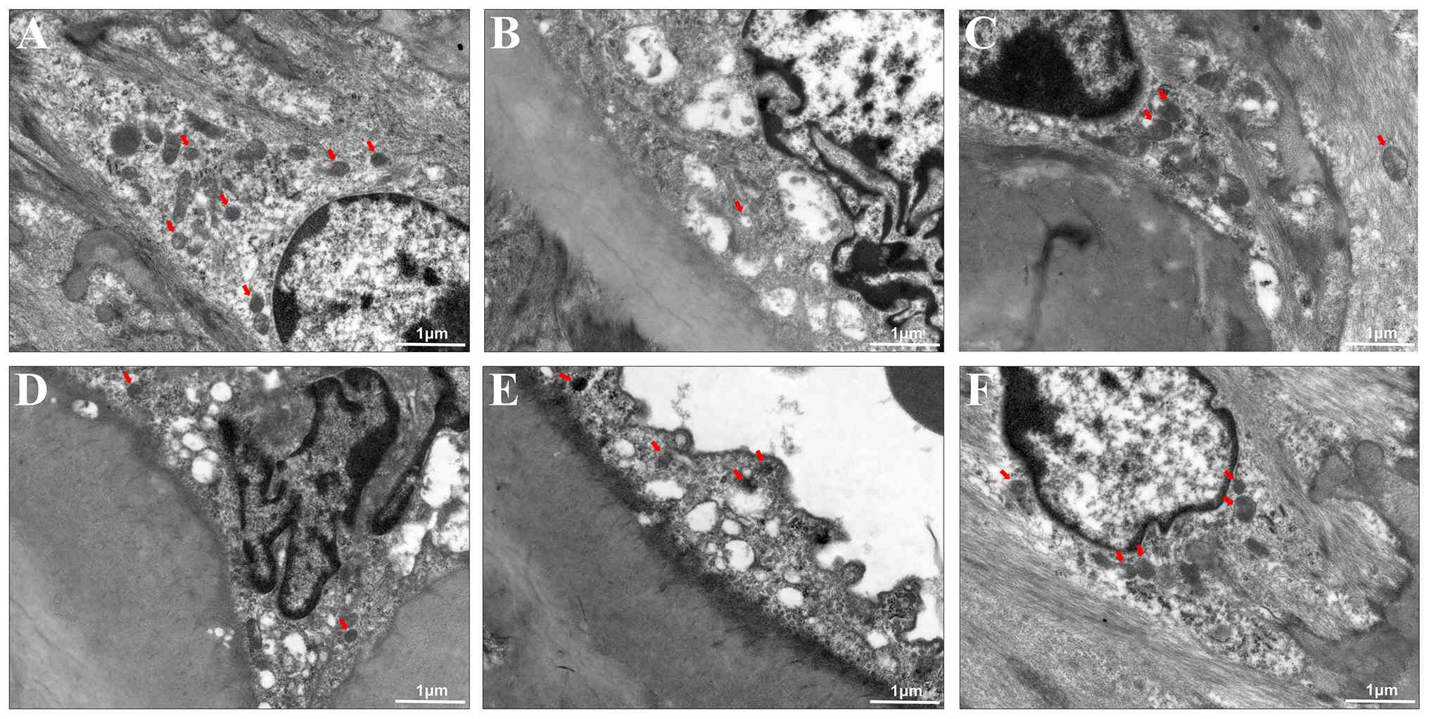 Aortic root specimens were primarily fixed with 3% glutaraldehyde in phosphate buffer (Ph 7.2) for 48-72 h, followed by thorough PBS rinsing and subsequent graded ethanol dehydration. Following embedding and polymerization in Epon 812 resin, tissue blocks were subjected to ultrathin sectioning. Sections of 90 nm thickness, prepared with an ultramicrotome equipped with a diamond knife, were imaged using a Hitachi H-800 TEM at an acceleration voltage of 80 kV to assess ultrastructural details.