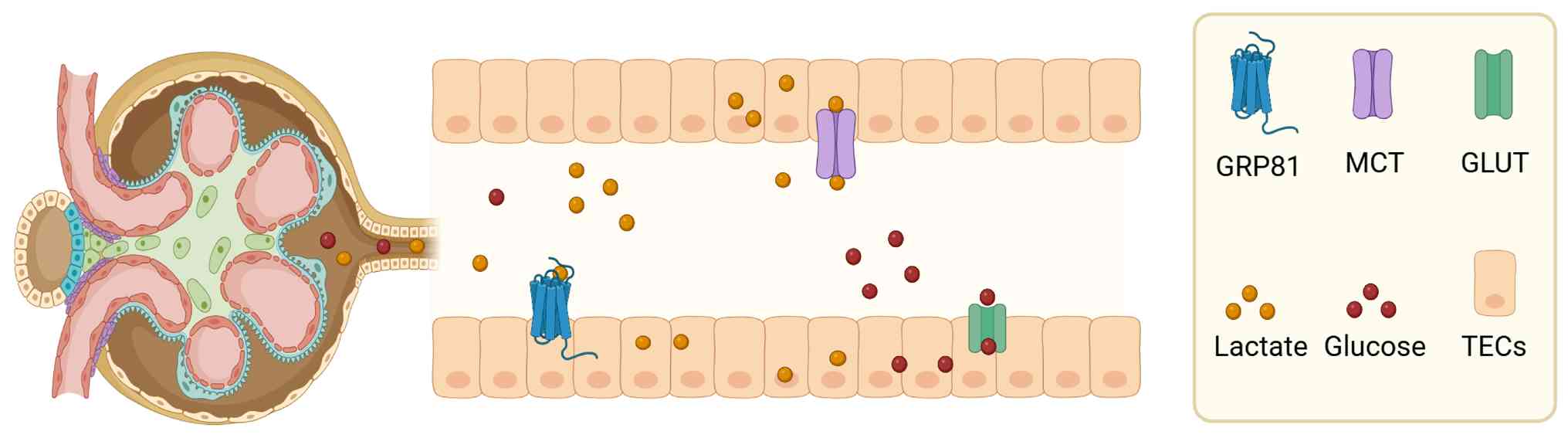 In addition, lactate can enter the intracellular space through GPR81 (or hydroxycarboxylic acid receptor 1), whose activation downregulates cAMP and suppresses the protein kinase A (PKA) pathway (43). Furthermore, lactate-related GPR81 activation may signal via a non-canonical, cAMP/PKA-independent pathway that involves the GPR81 adaptor protein β-arrestin under some conditions (44). In fact, GPR81 is expressed mainly in fat tissue and, to a lesser degree, can also be detected in the brain, kidney, liver, skeletal muscle and immune cells, although its role in non-adipose tissues remains controversial (45).