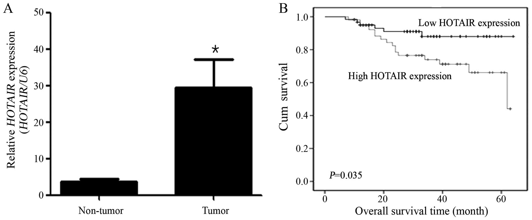 Overexpression of long noncoding RNA HOTAIR predicts a poor