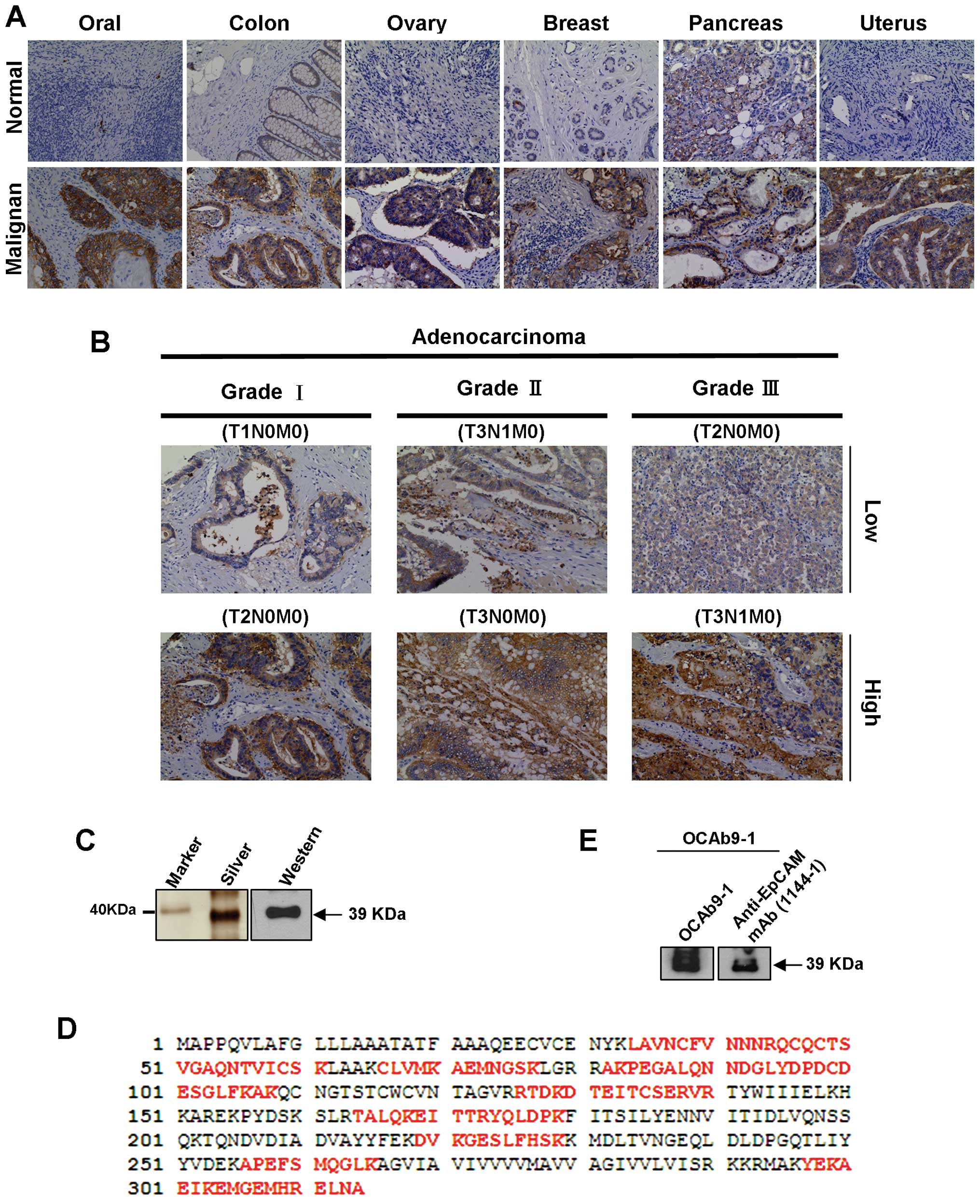 Litvinov SV, Velders MP, Bakker HA, et al: a human epithelial antigen is a homophilic cell-cell adhesion molecule. J Cell Biol. 125:437–446. 1994. View Article : Google Scholar : PubMed/NCBI | |
