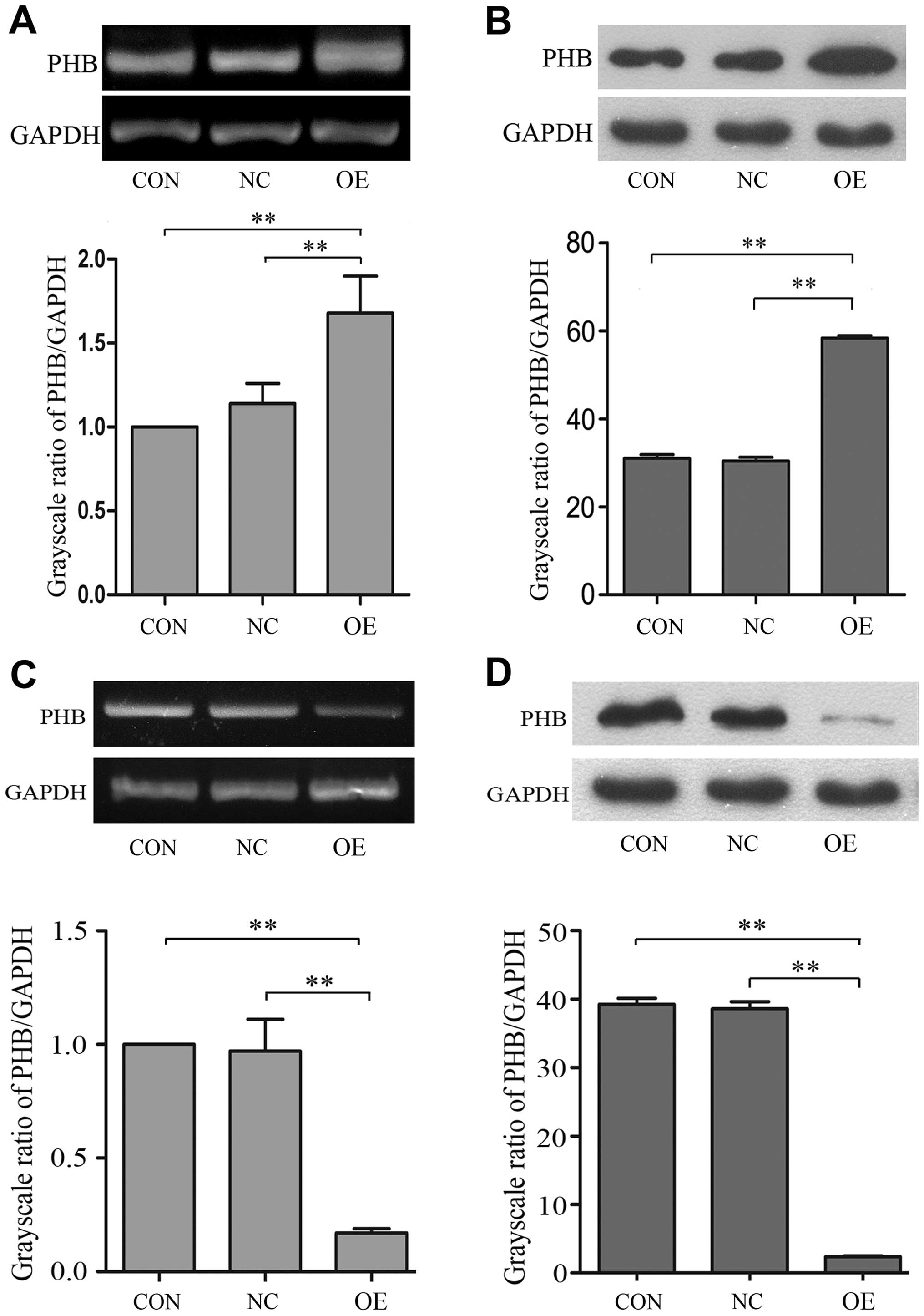 L: siRNA targeting prohibitins inhibits proliferation and promotes