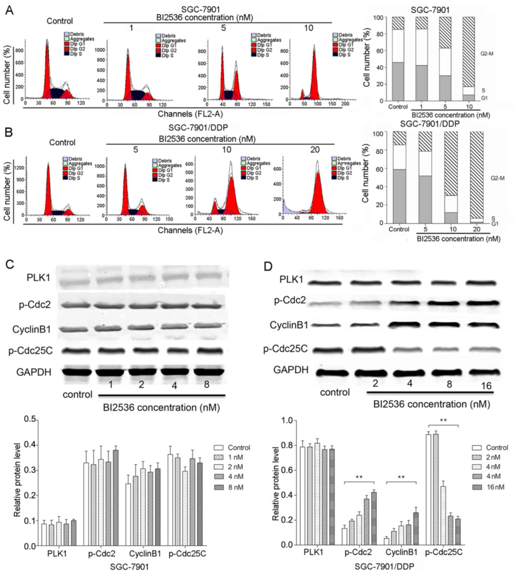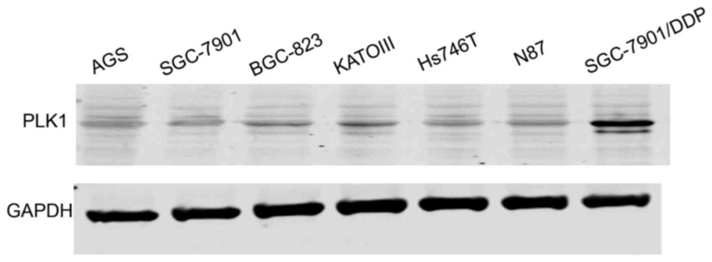 As shown in Fig. 1, PLK1 was upregulated in the SGC-7901. DDP (cisplatin-resistant) gastric cancer cells compared with the SGC-7901 cells. Thus, we further explored the function of the PLK1 inhibitor, BI2536, in gastric cancer cells.