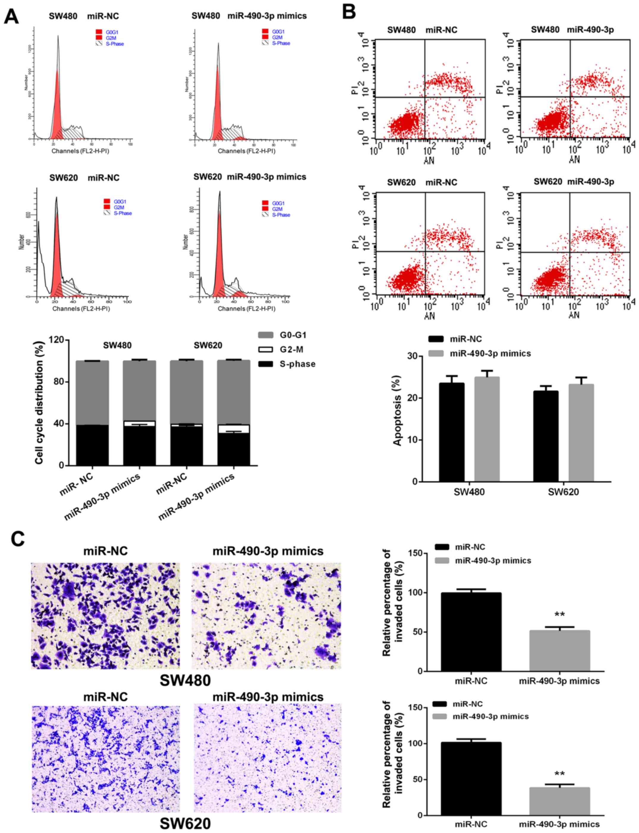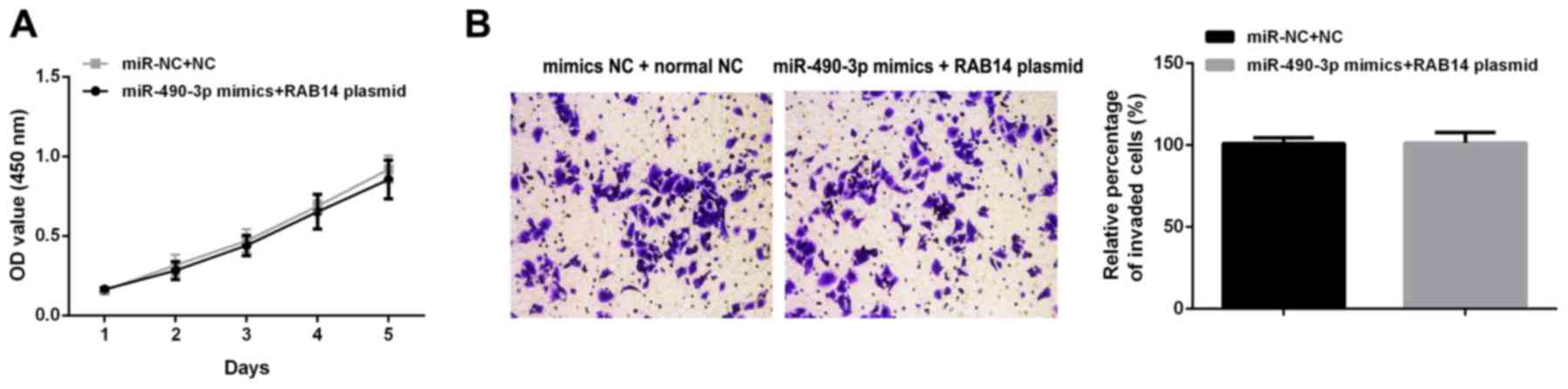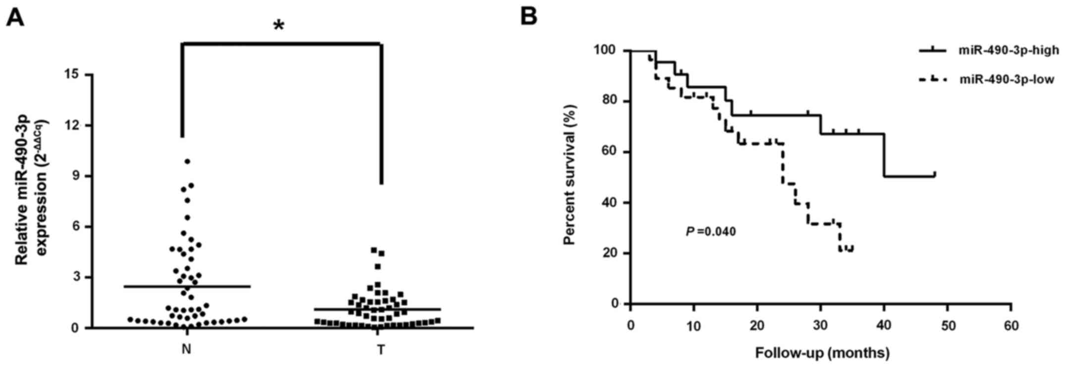 Cheng K and Zou W: miR-490-3p inhibits the growth and invasiveness