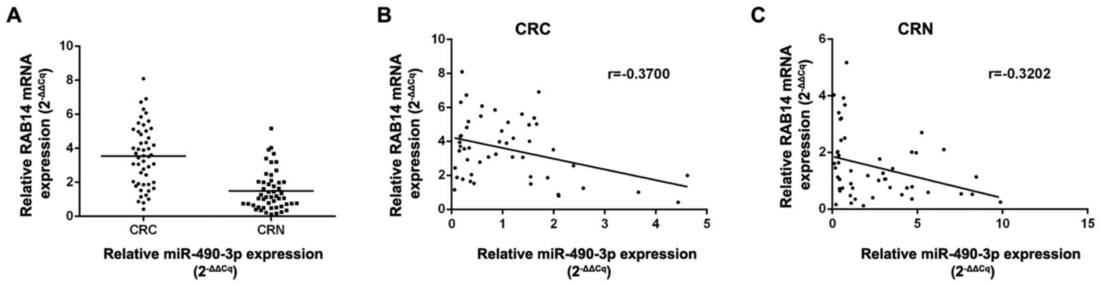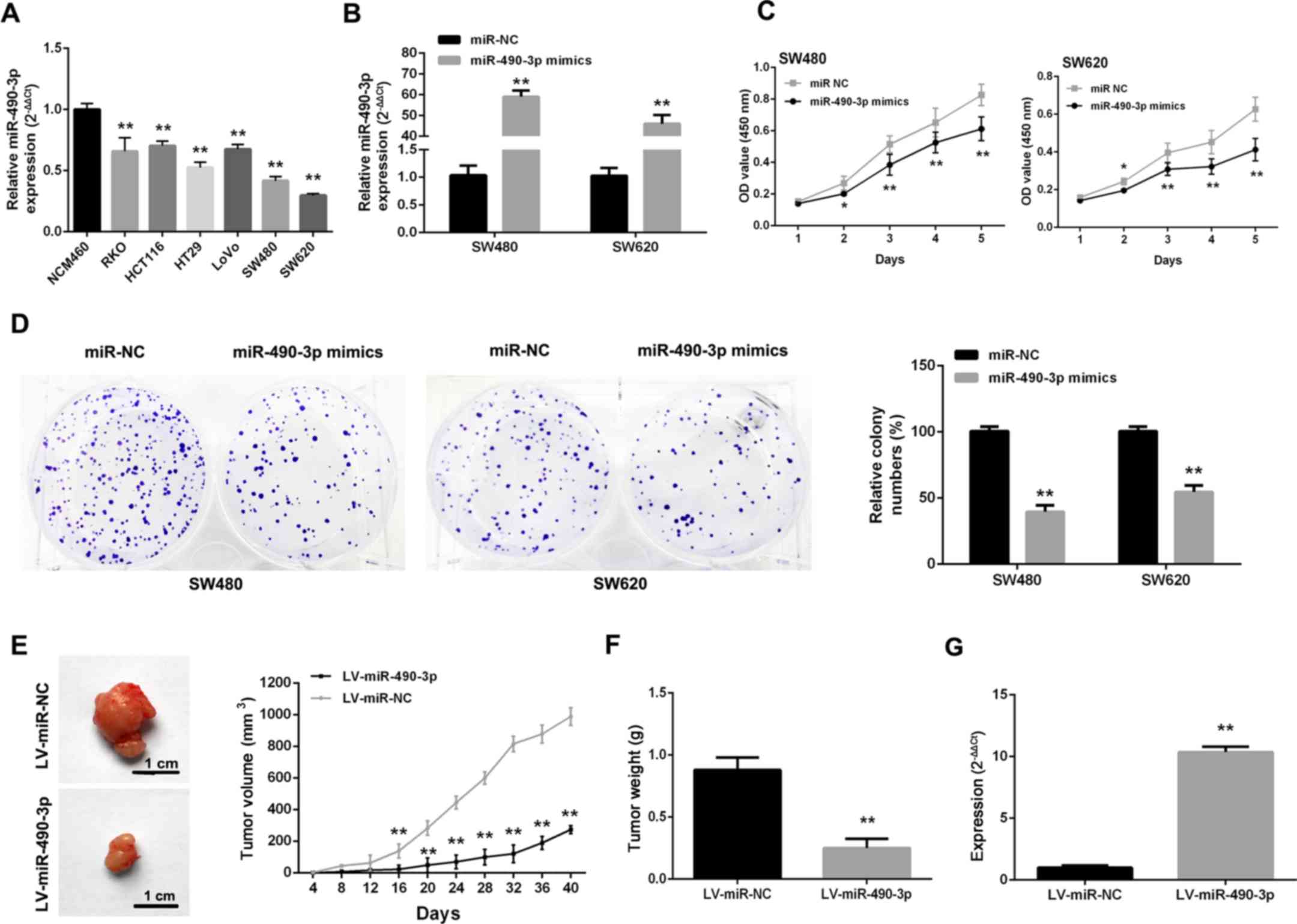 Li Y and Wu S: MicroRNA-490-3p inhibits colorectal cancer