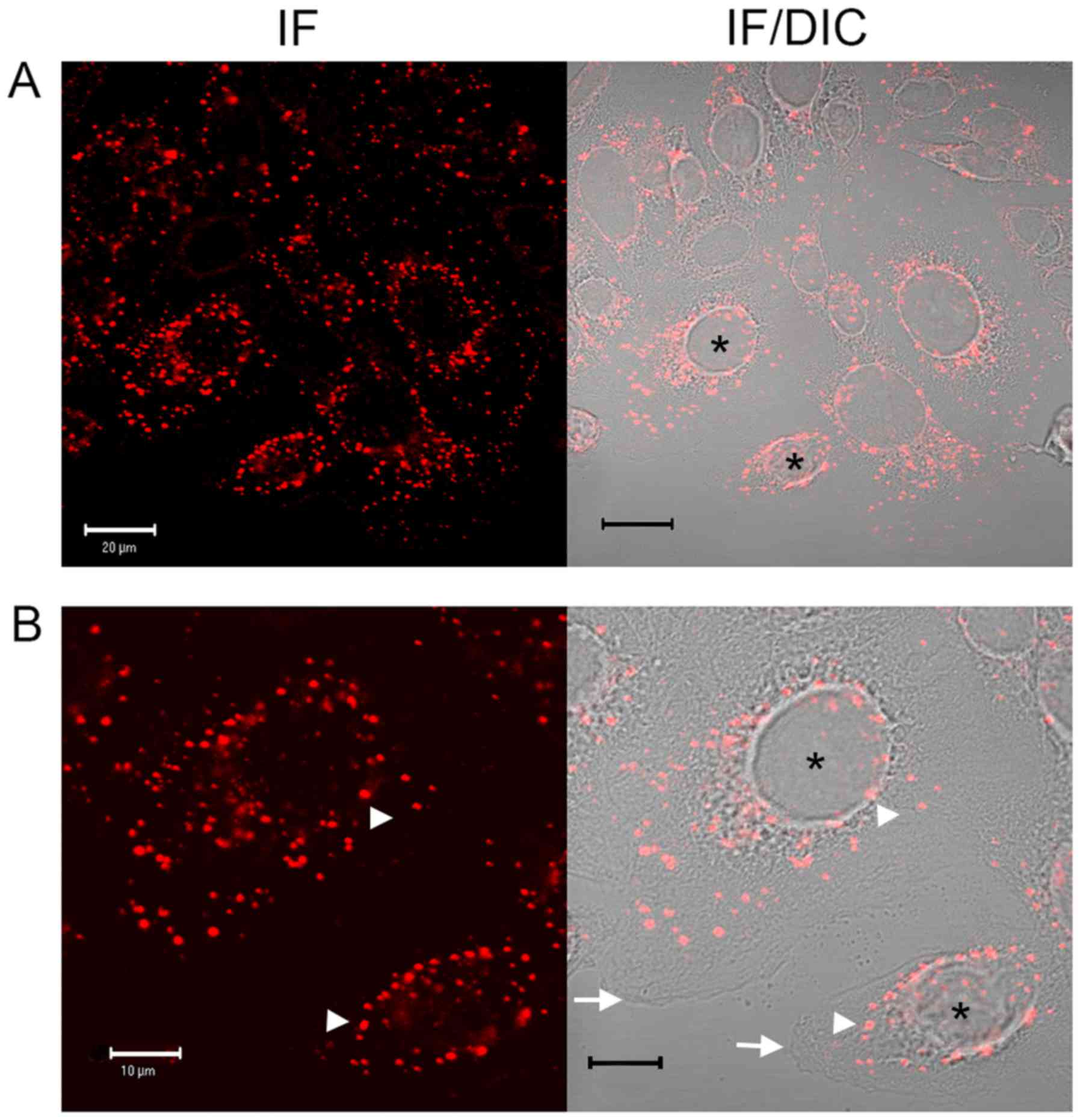Murthy U, Basu M, Sen-Majumdar A and Das M: Perinuclear location and recycling of epidermal growth factor receptor kinase: Immunofluorescent visualization using antibodies directed to kinase and extracellular domains. J Cell Biol. 103:333–342. 1986. View Article : Google Scholar : PubMed/NCBI | |