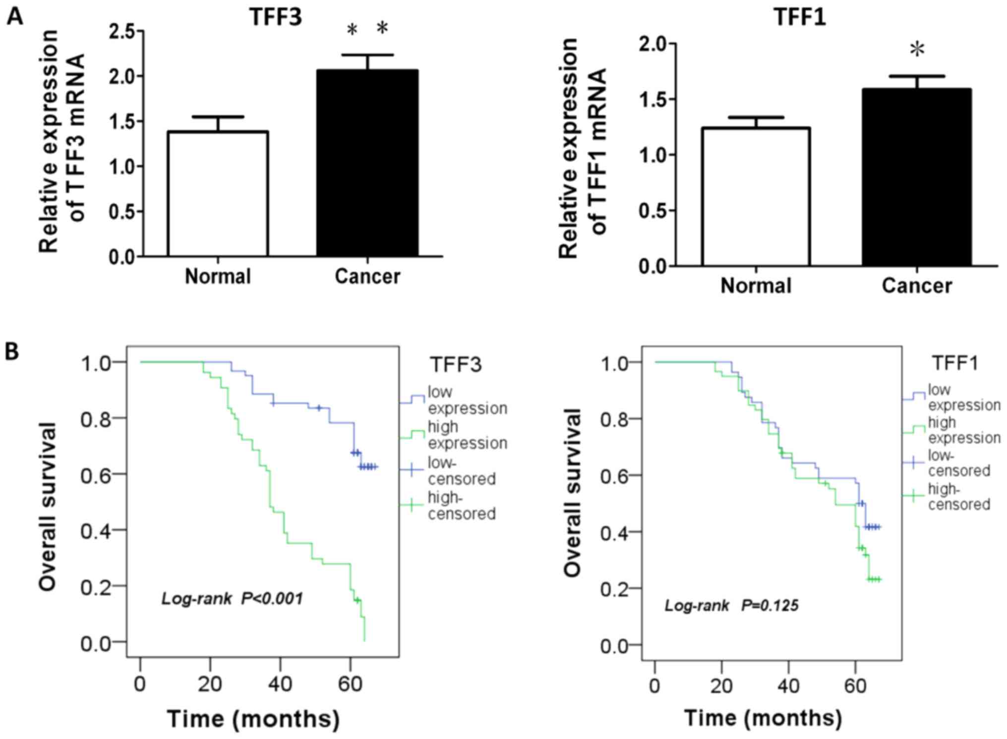 Meng JR, Tang HZ, Zhou KZ, Shen WH and Guo HY: TFF3 and survivin expressions associate with a lower survival rate in gastric cancer. Clin Exp Med. 13:297–303. 2013. View Article : Google Scholar