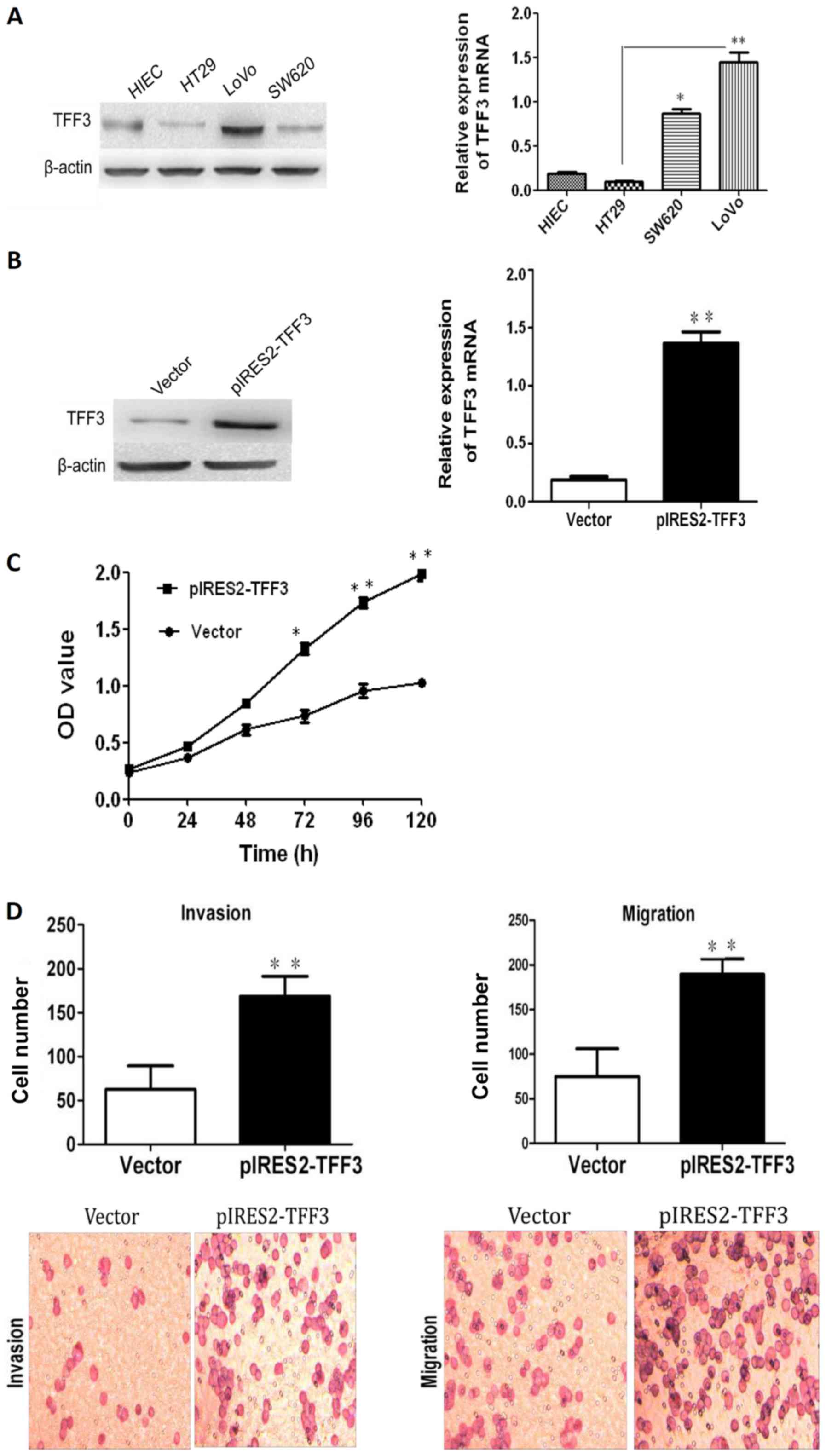 Yusufu A, Shayimu P, Tuerdi R, Fang C, Wang F and Wang H: TFF3 and TFF1 expression levels are elevated in colorectal cancer and promote the malignant behavior of colon cancer by activating the EMT process. Int J Oncol 55: 789-804, 2019.