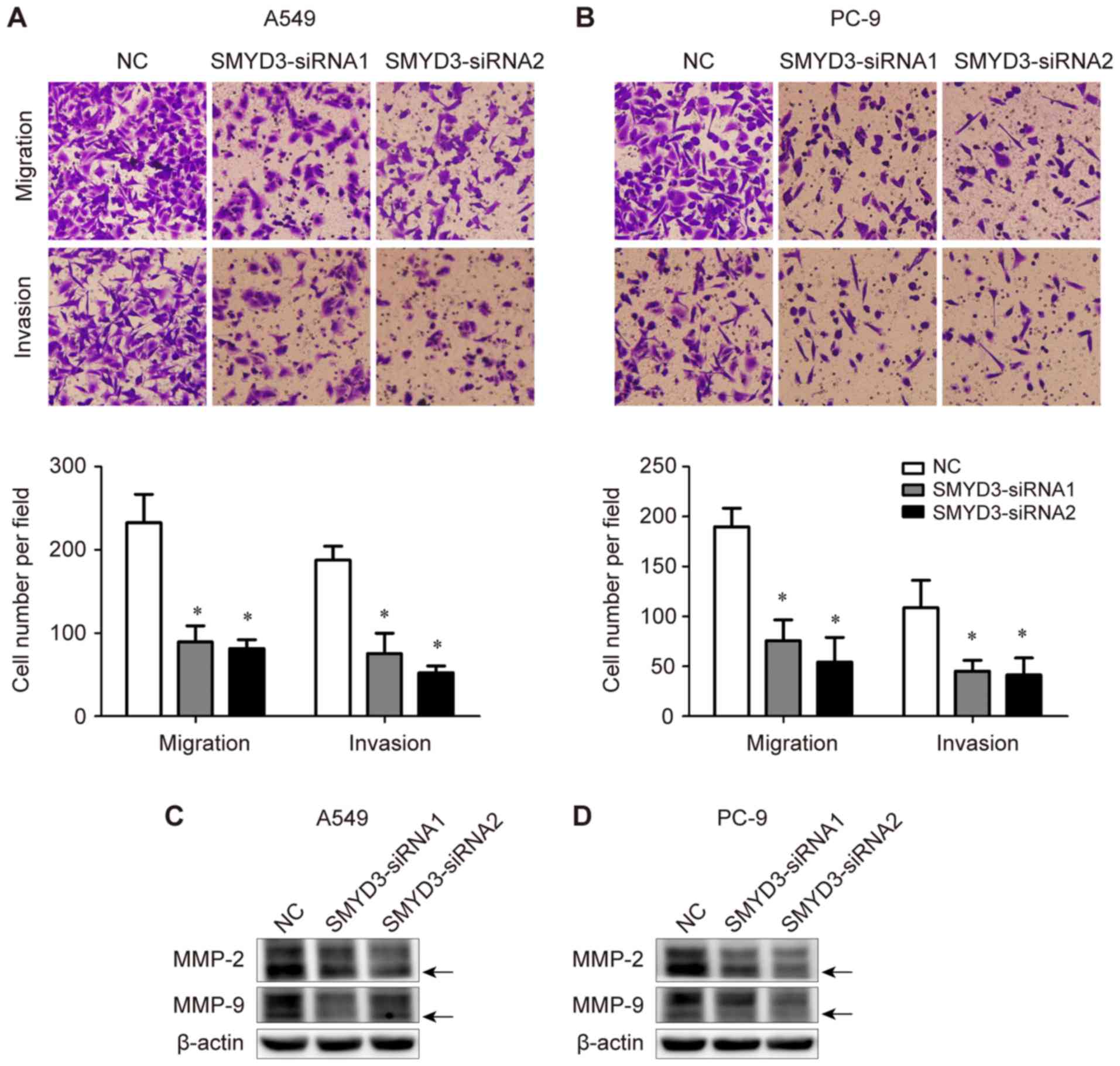 and Zhang P: Effect of the downregulation of SMYD3 expression by
