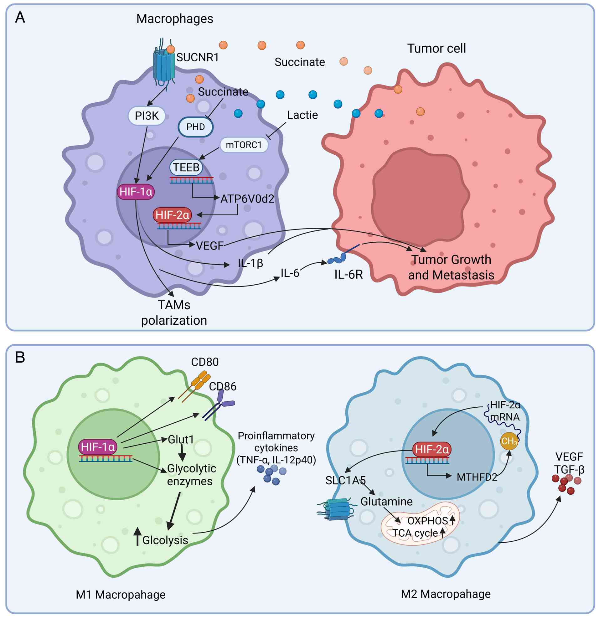 To summarize, during different stages of tumor progression, HIFs are regulated by complex signaling networks, which influence the functions and polarization states of macrophages. While regulating the functionality of TAMs, tumor growth and metastasis and antitumor immune responses, HIFs exhibit overlapping yet distinct roles, reflecting their nuanced contributions to the TME.