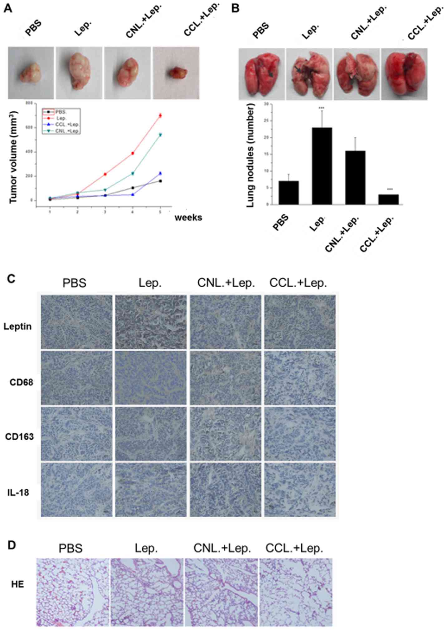 The revised versions of Figs. 2 and 4 (showing the correct data for the MDA-MB-231 cell line in Fig. 2E and the β-actin blots in Fig. 4B) are shown on the next two pages. Furthermore, a revised version of Fig. 6, showing replacement data for the CD68/Lep. data panel, is also shown on the third page. Note that the errors made in assembling these figures did not affect the overall results and conclusions reported in the paper. The authors are grateful to the Editor of International Journal of Oncology for granting them the opportunity to publish this corrigendum, and all the authors agree with its publication; furthermore, they apologize to the readership of the journal for any inconvenience caused.