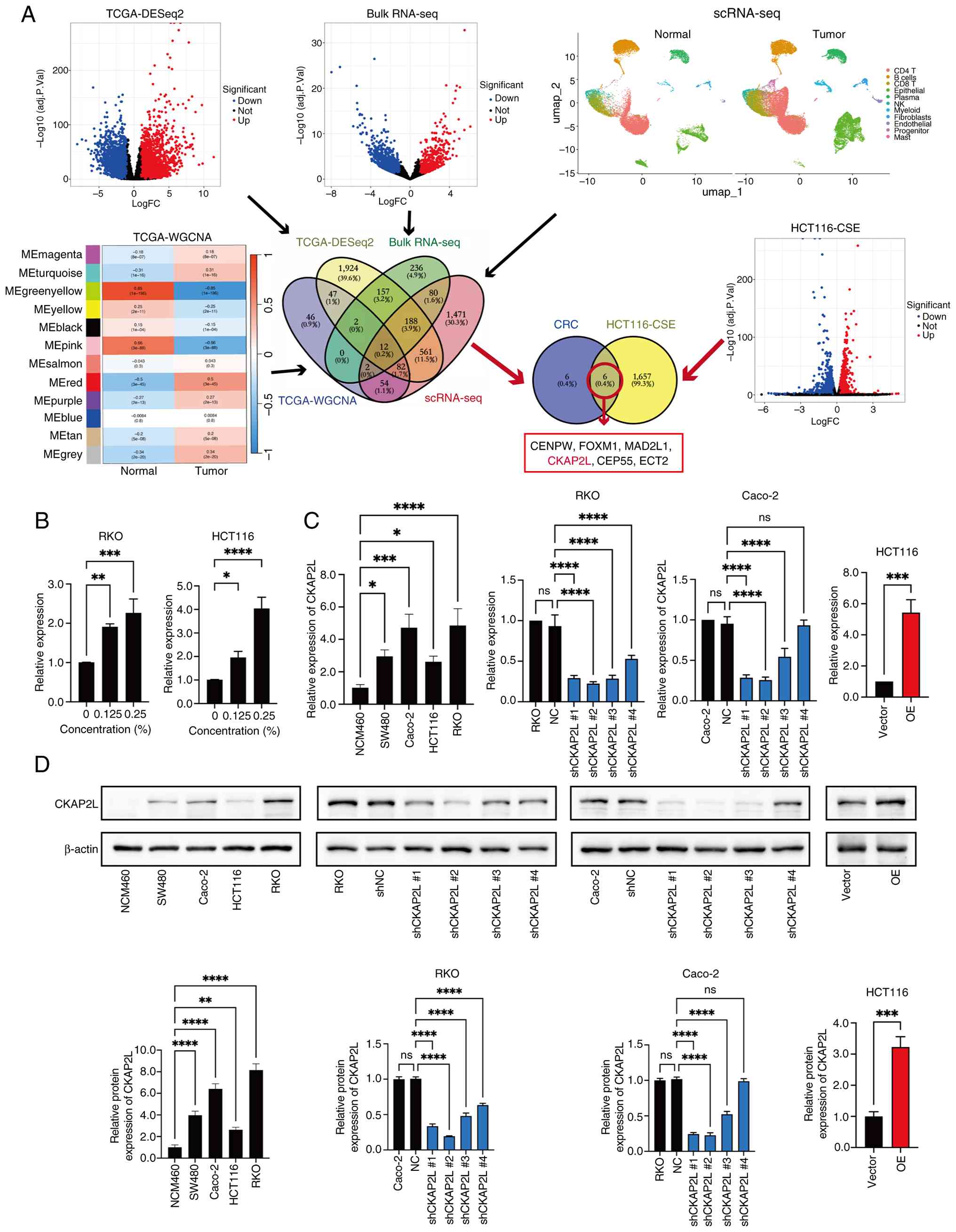 Luo Q, Zhu B, Wang C and Wang Y: CKAP2L plays a pivotal role in colorectal cancer progression via the dual regulation of cell cycle and epithelial-mesenchymal transition. Discov Med. 37:182–192. 2025. View Article : Google Scholar : PubMed/NCBI | |