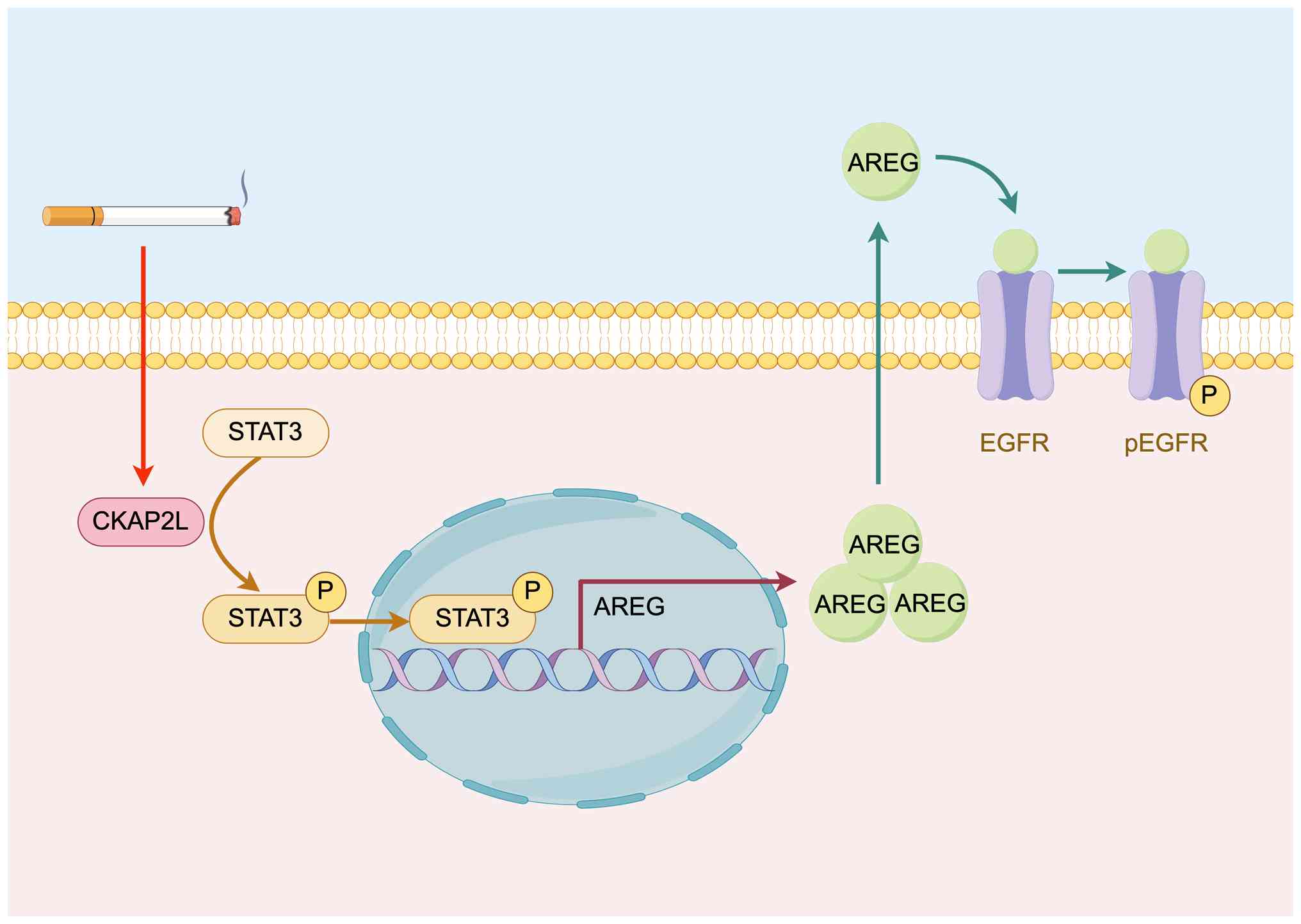 These results revealed that CKAP2L may promote the phosphorylation level of STAT3. Subsequently, STAT3 promotes AREG transcription and activates the AREG/EGFR pathway, resulting in CRC progression (Fig. 8).
