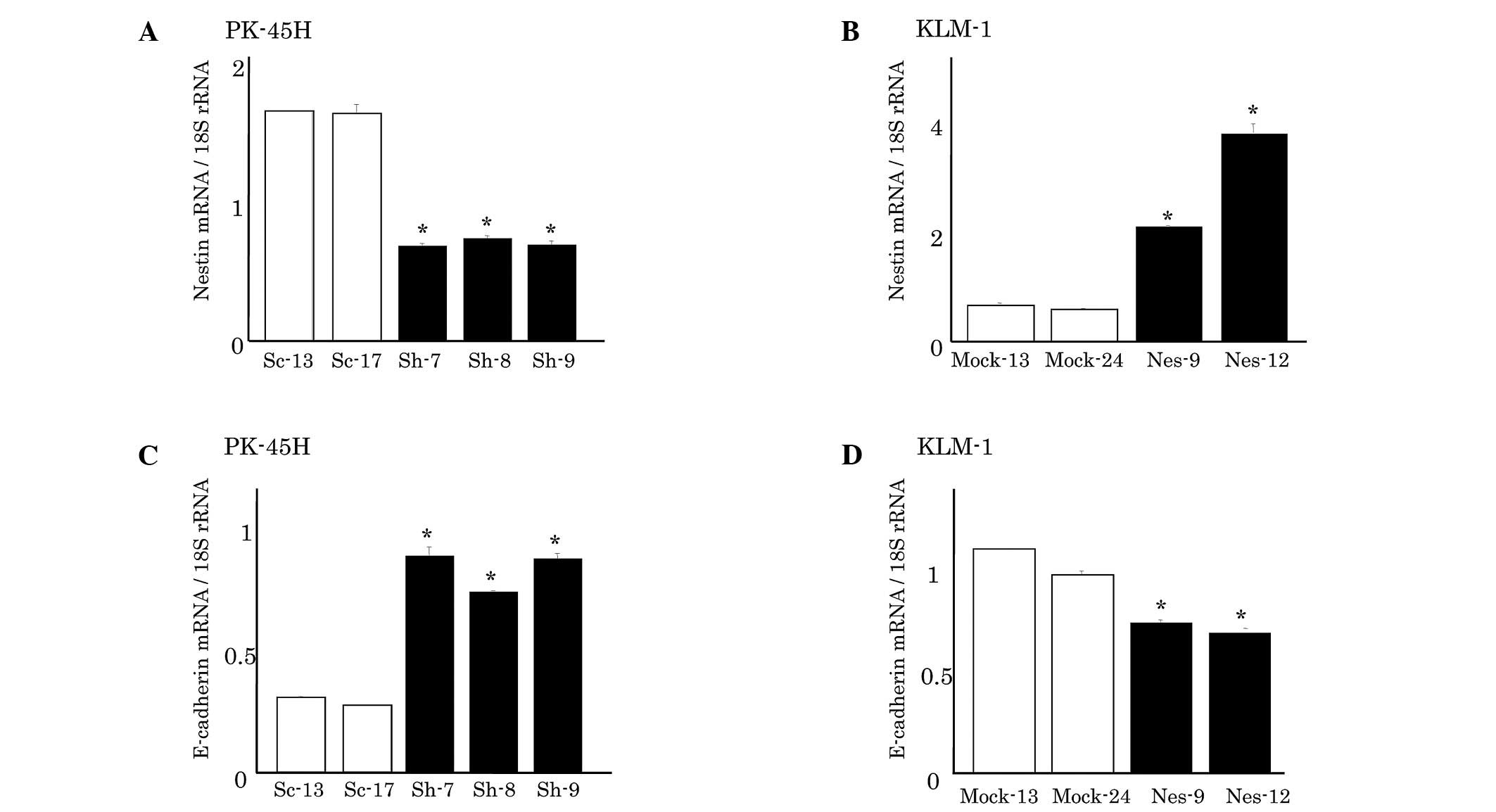 N, Korc M and Ishiwata T: Nestin is a novel target for suppressing