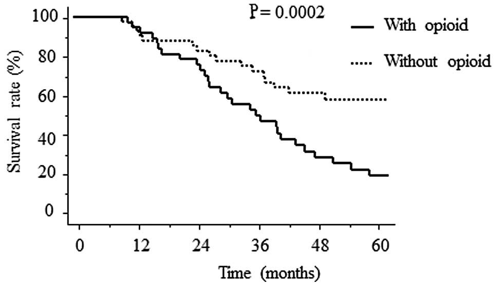 Inoue Y, Iwata T, Okugawa Y, Kawamoto A, Hiro J, Toiyama Y, Tanaka K, Uchida K, Mohri Y, Kusunoki M, Kusunoki M, et al: Prognostic significance of opioid use in the active treatment of advanced colorectal cancer. Mol Clin Oncol 1: 59-64, 2013.