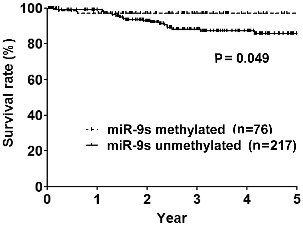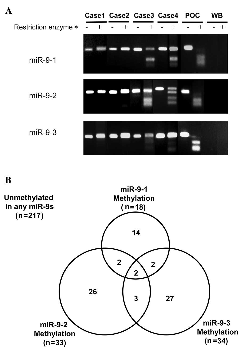 hypermethylation of miR-9 genes in gastric cancer. Epigenetics.