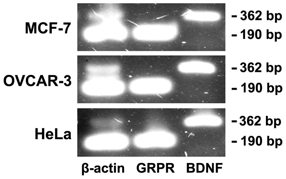 presence of receptors for bombesin/GRP and mRNA for three receptor