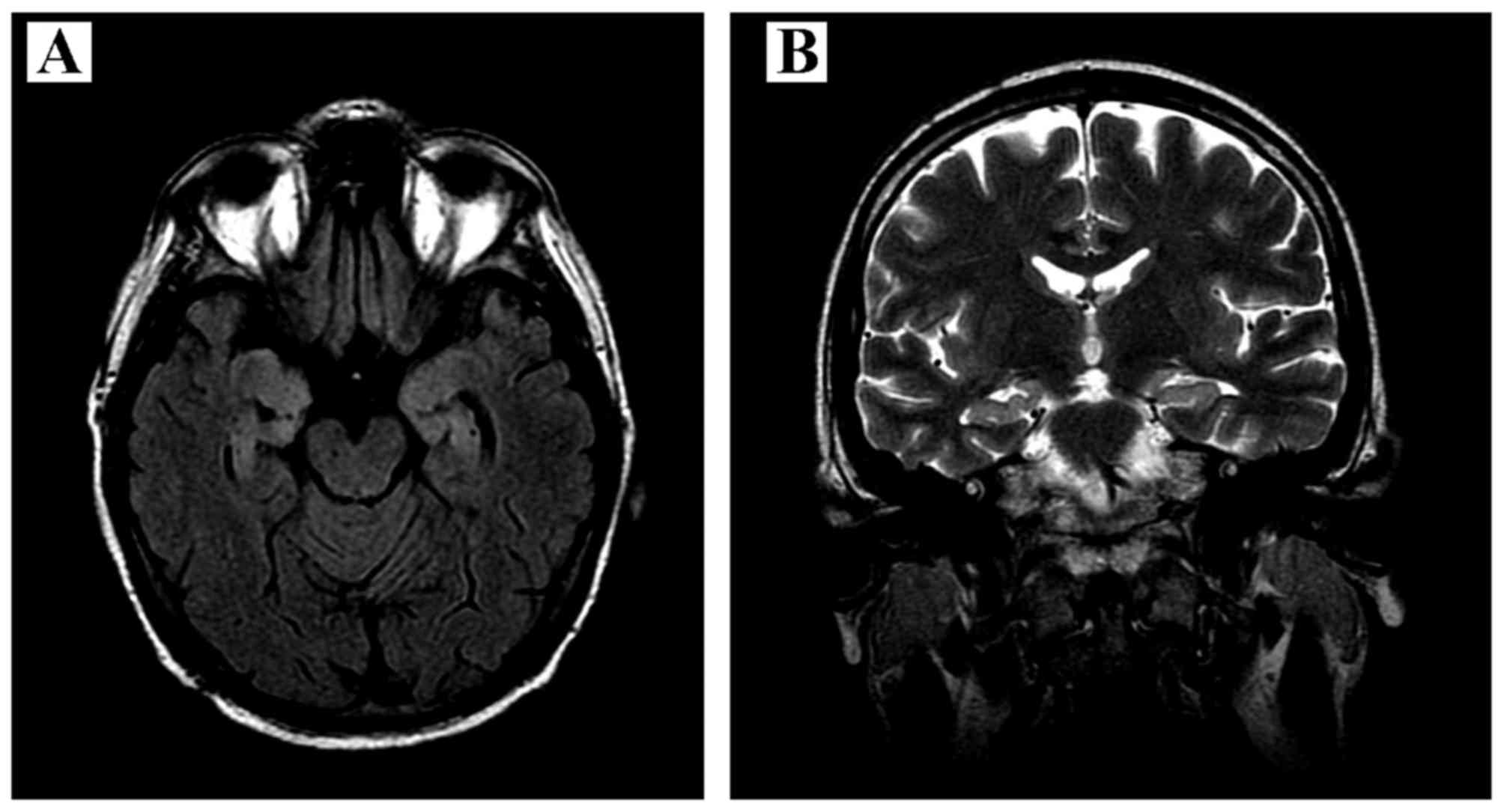Gultekin SH, Rosenfeld MR, Voltz R, Eichen J, Posner JB and Dalmau J: Paraneoplastic limbic encephalitis: Neurological symptoms, immunological findings and tumour association in 50 patients. Brain. 123:1481–1494. 2000. View Article : Google Scholar : PubMed/NCBI