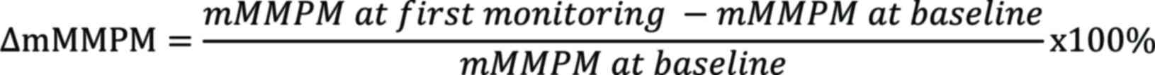 ∆mMMPM was defined as the percentage change of mMMPM in plasma at the first monitoring time-point after the first infusion of tislelizumab (ranging from cycles 2 to 6) since baseline for each patient: