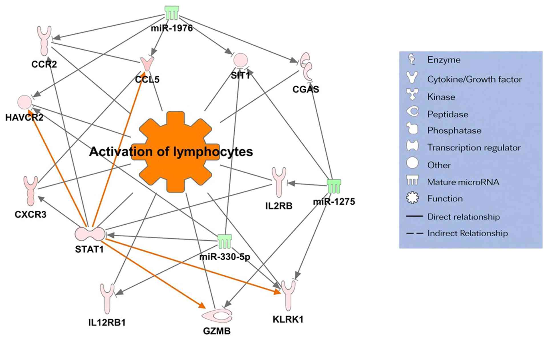 To examine the molecular functions and interaction networks of expressed miRNA and mRNA, combined data from the present study and previously published datasets generated by our group were analyzed using Ingenuity Pathways Analysis (IPA) software (Ingenuity Systems, Redwood City, CA, USA).
