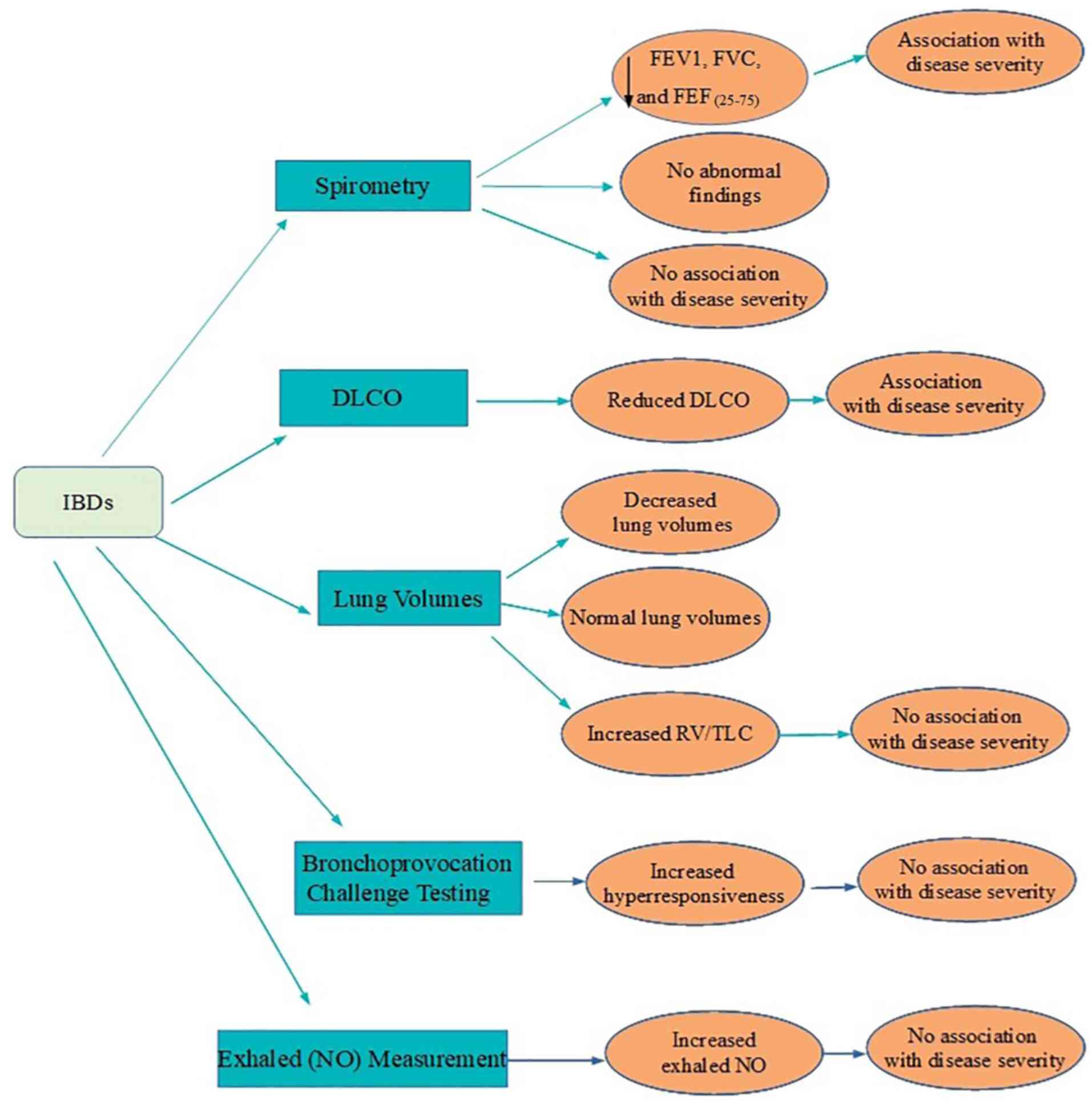 Pulmonary function test abnormalities in pediatric inflammatory