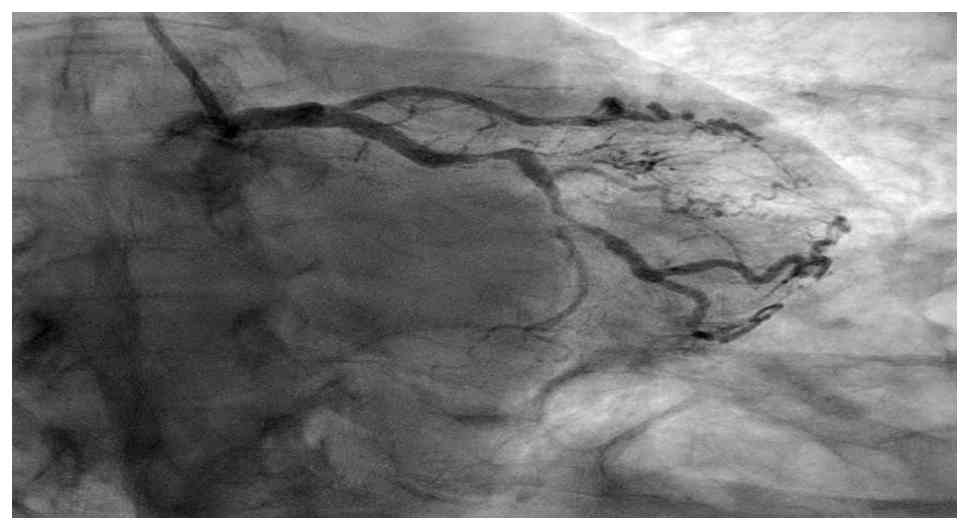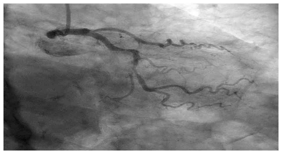 Gabapentinoids, including pregabalin and gabapentin, are commonly prescribed for diabetic neuropathy; however, their use has been linked to adverse cardiovascular outcomes and may further obscure the recognition of ischemic symptoms in high-risk patients (8-10). The present case report describes a case of atypical ACS in a diabetic woman receiving pregabalin, ultimately found to have severe multivessel coronary artery disease.