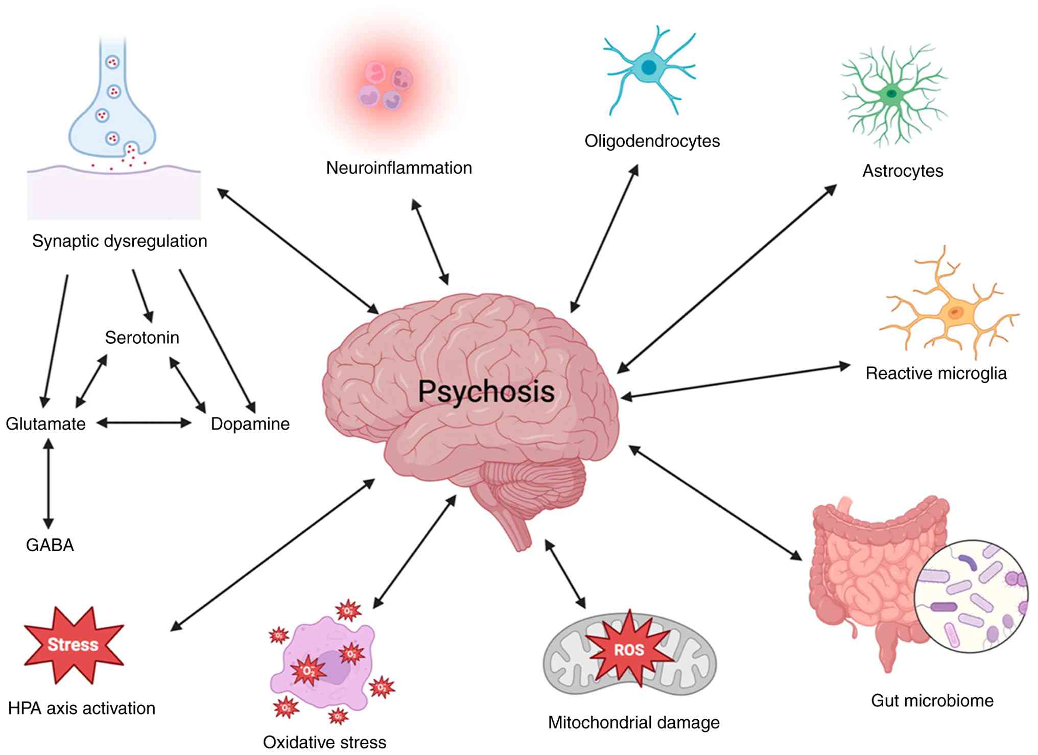 Rawani NS, Chan AW, Dursun SM and Baker GB: The underlying neurobiological mechanisms of psychosis: Focus on neurotransmission dysregulation, neuroinflammation, oxidative stress, and mitochondrial dysfunction. Antioxidants (Basel). 13(709)2024.PubMed/NCBI View Article : Google Scholar | |