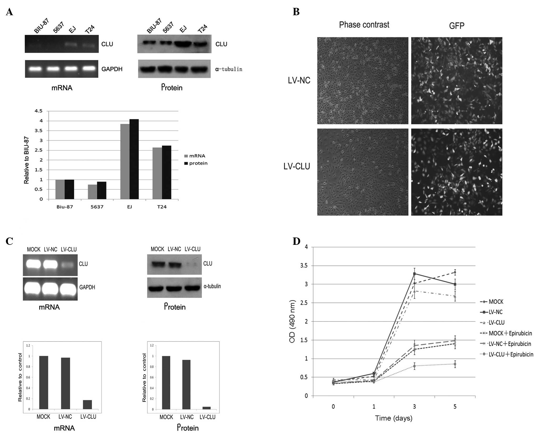 Lentivirus-mediated RNA interference of clusterin enhances the chemosensitivity of EJ bladder cancer cells to epirubicin in vitro