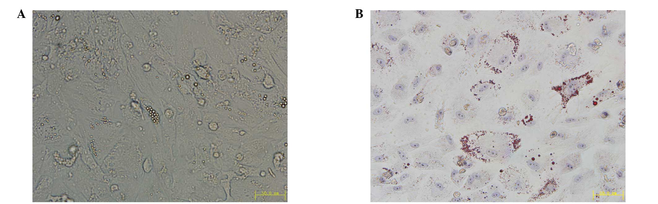 The data are expressed as the mean ± standard deviation. All data were analyzed using the software SAS V9.1 (SAS Institute Inc., Cary, NC, USA). Student’s t-test was used to analyze the statistical difference. P<0.05 was considered to indicate a statistically significant difference.