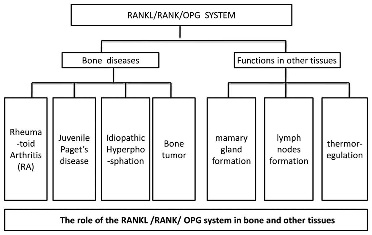 The functions of the RANKL/RANK/OPG system in bone-associated diseases are summarized in Fig. 2.
