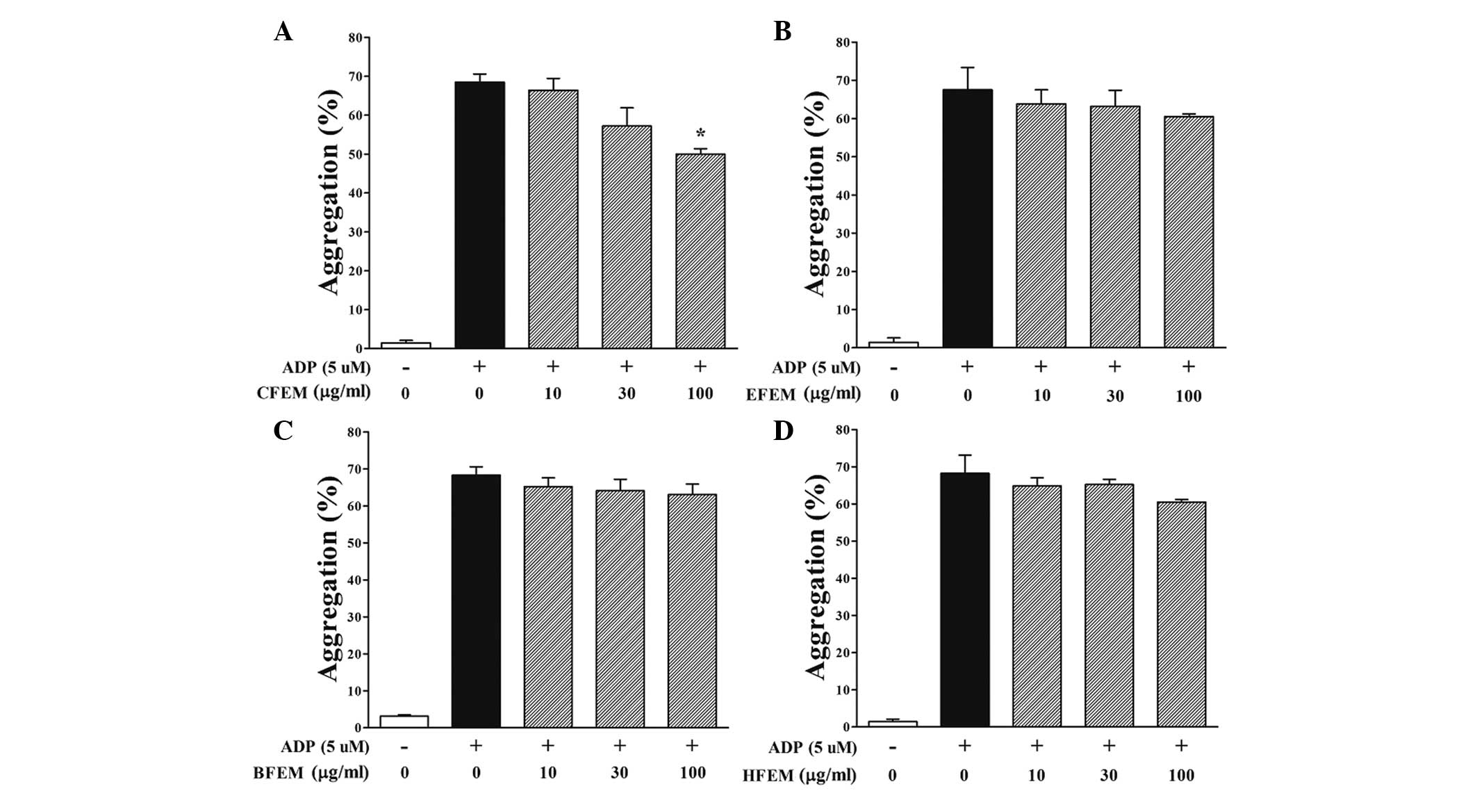 Lee BJ, Jo IY, Bu Y, et al: Antiplatelet effect of Spatholobus suberectus via inhibition of glycoprotein IIb/IIIa receptor. J Ethnopharmacol. 134:460–467. 2011. View Article : Google Scholar : PubMed/NCBI