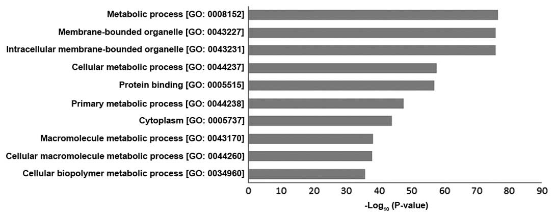Hong F, Breitling R, McEntee CW, Wittner BS, Nemhauser JL and Chory J: RankProd: a bioconductor package for detecting differentially expressed genes in meta-analysis. Bioinformatics. 22:2825–2827. 2006. View Article : Google Scholar : PubMed/NCBI