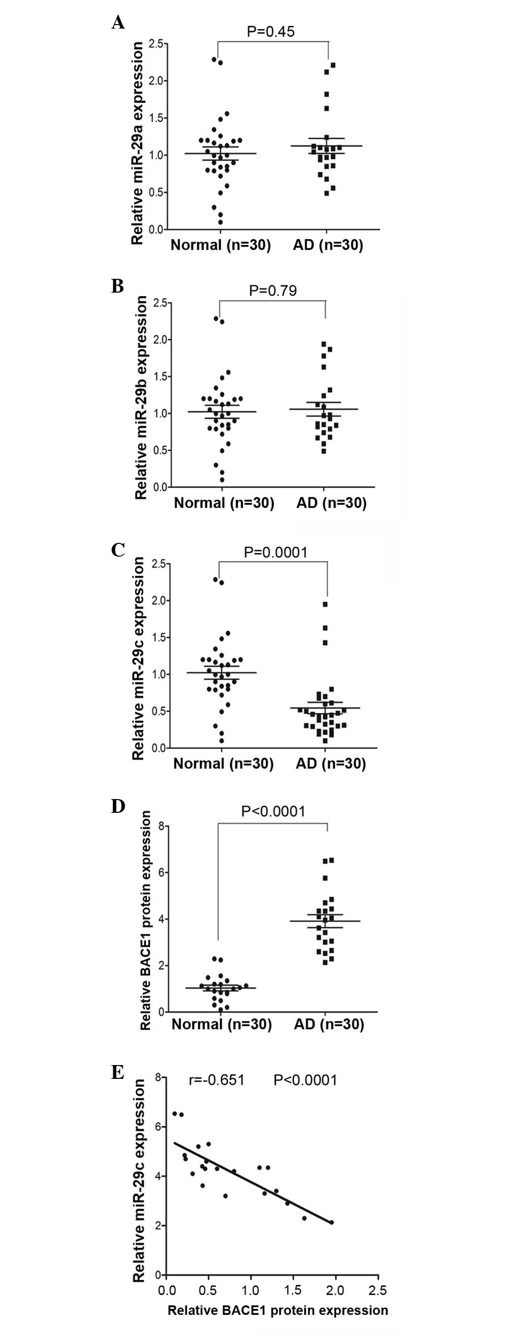 Wang WX, Rajeev BW, Stromberg AJ, et al: The expression of microRNA miR-107 decreases early in Alzheimer’s disease and may accelerate disease progression through regulation of beta-site amyloid precursor protein-cleaving enzyme 1. J Neurosci. 28:1213–1223. 2008. View Article : Google Scholar : PubMed/NCBI | |