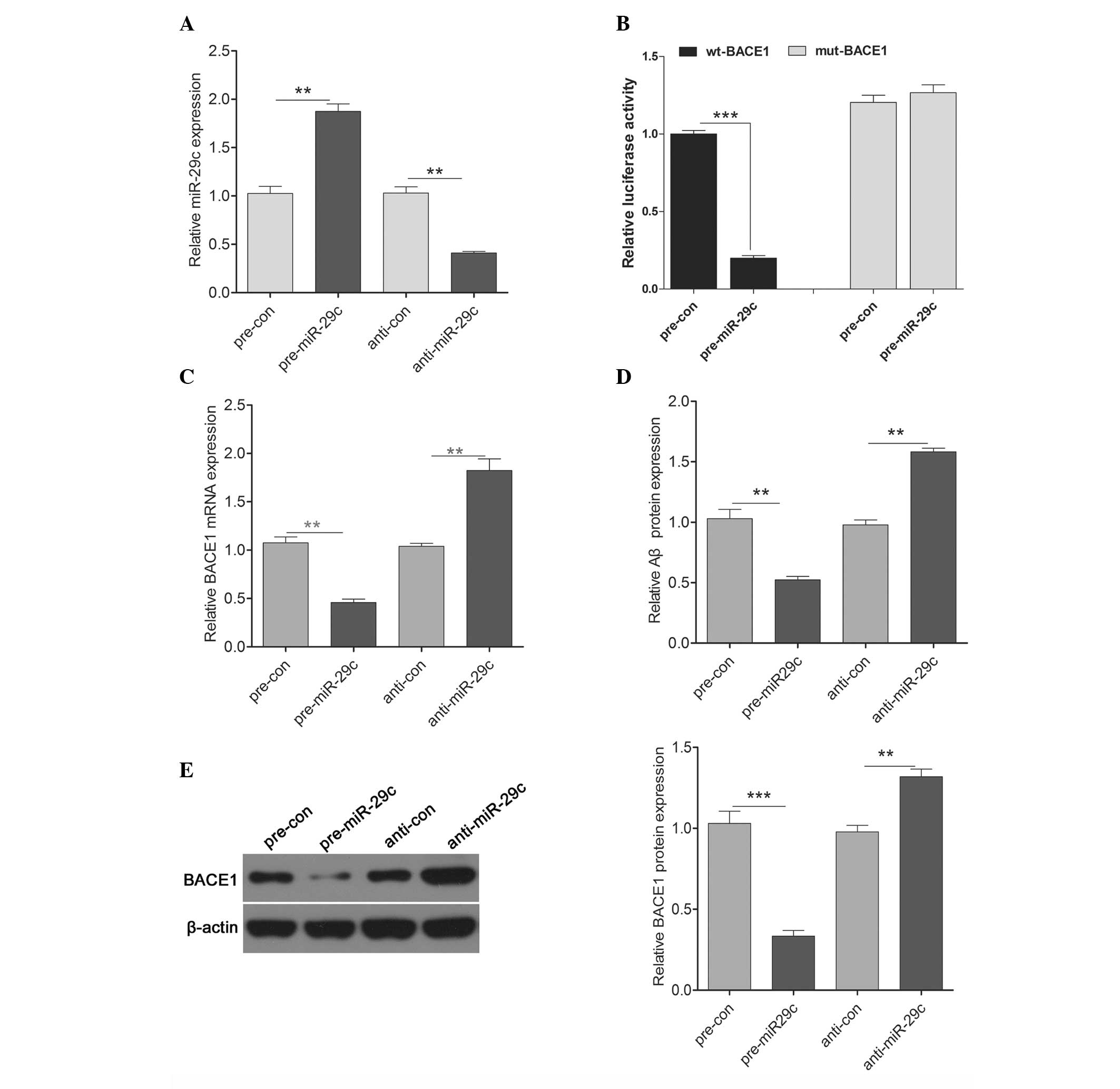 Zong Y, Wang H, Dong W, et al: miR-29c regulates BACE1 protein expression. Brain Res. 1395:108–115. 2011. View Article : Google Scholar : PubMed/NCBI | |