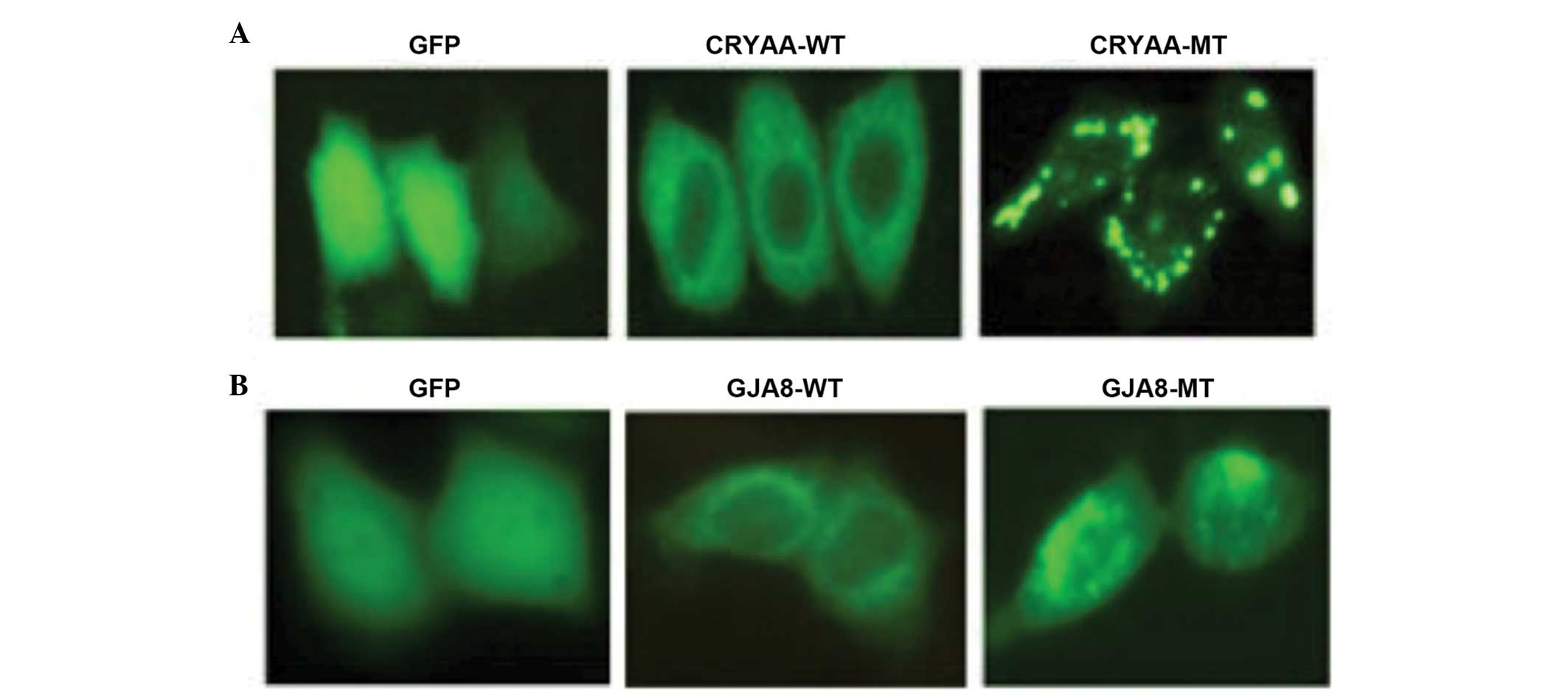 crystallin gene CRYAA. Hum Mol Genet. 7:471–474. 1998. View Article : Google Scholar : PubMed/NCBI